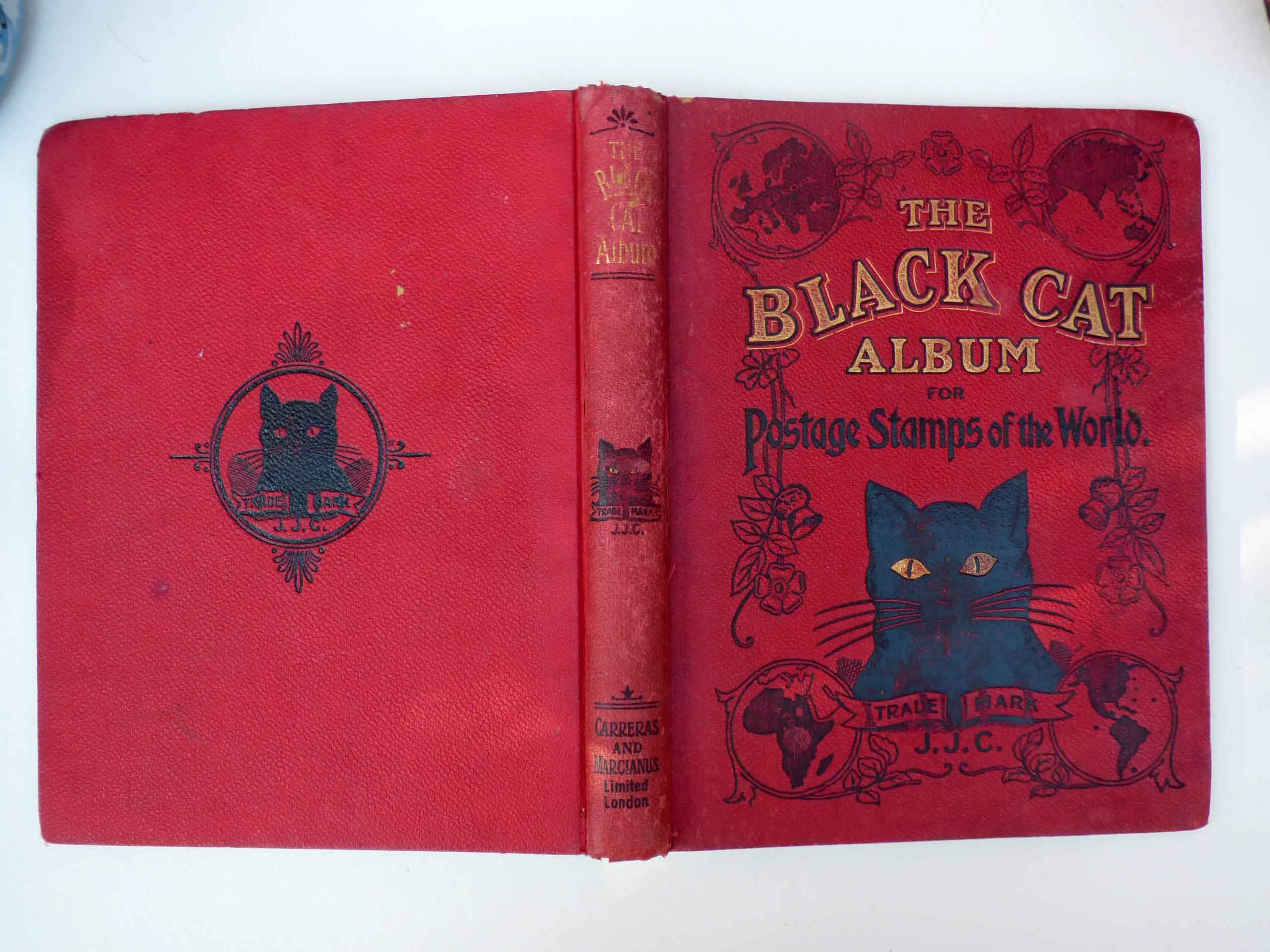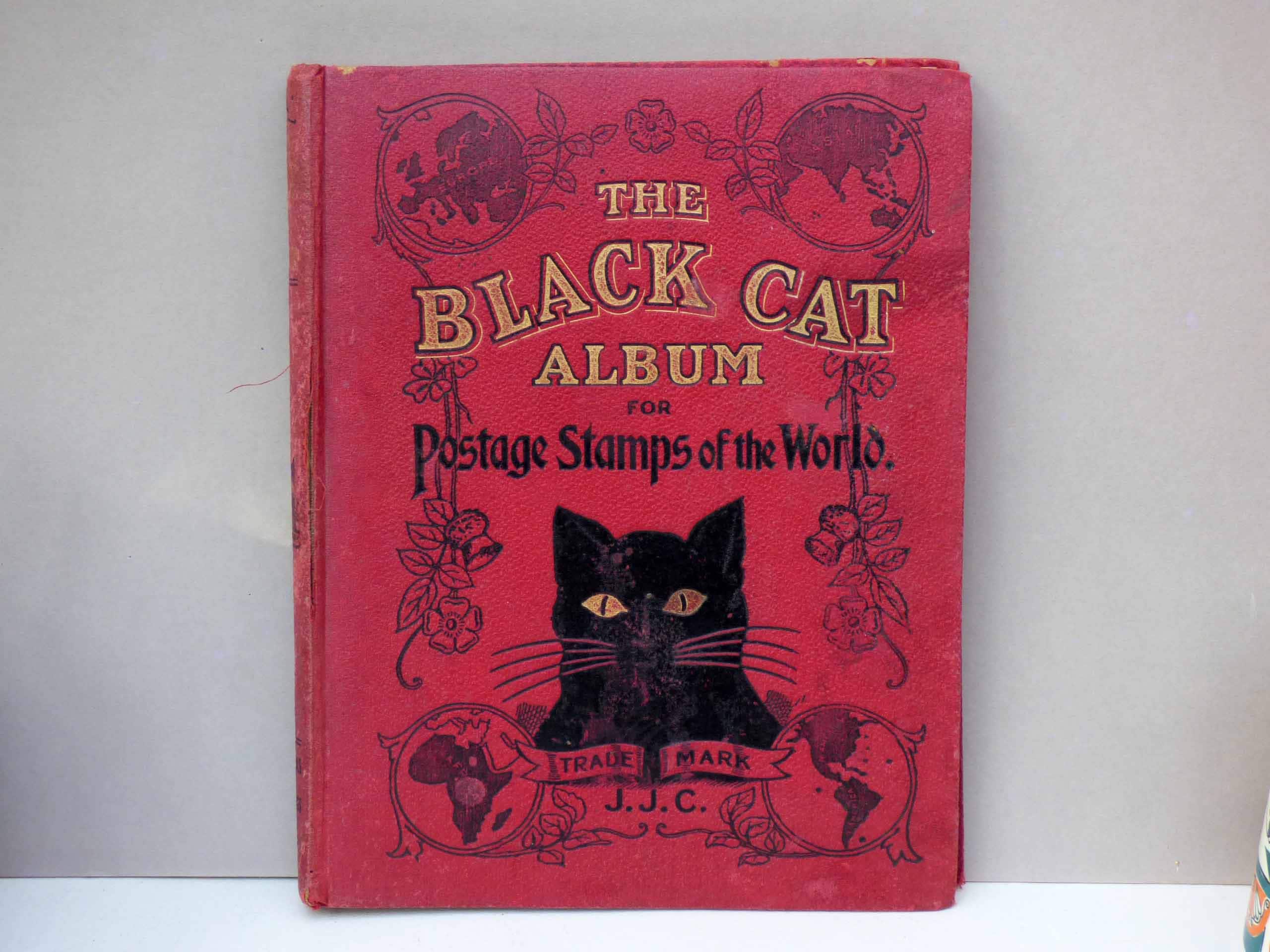 The Black cat stamp collecting book. An amazing victorian stamp collecting Album, the black cat album for postage stamps of the world was created in 1907.