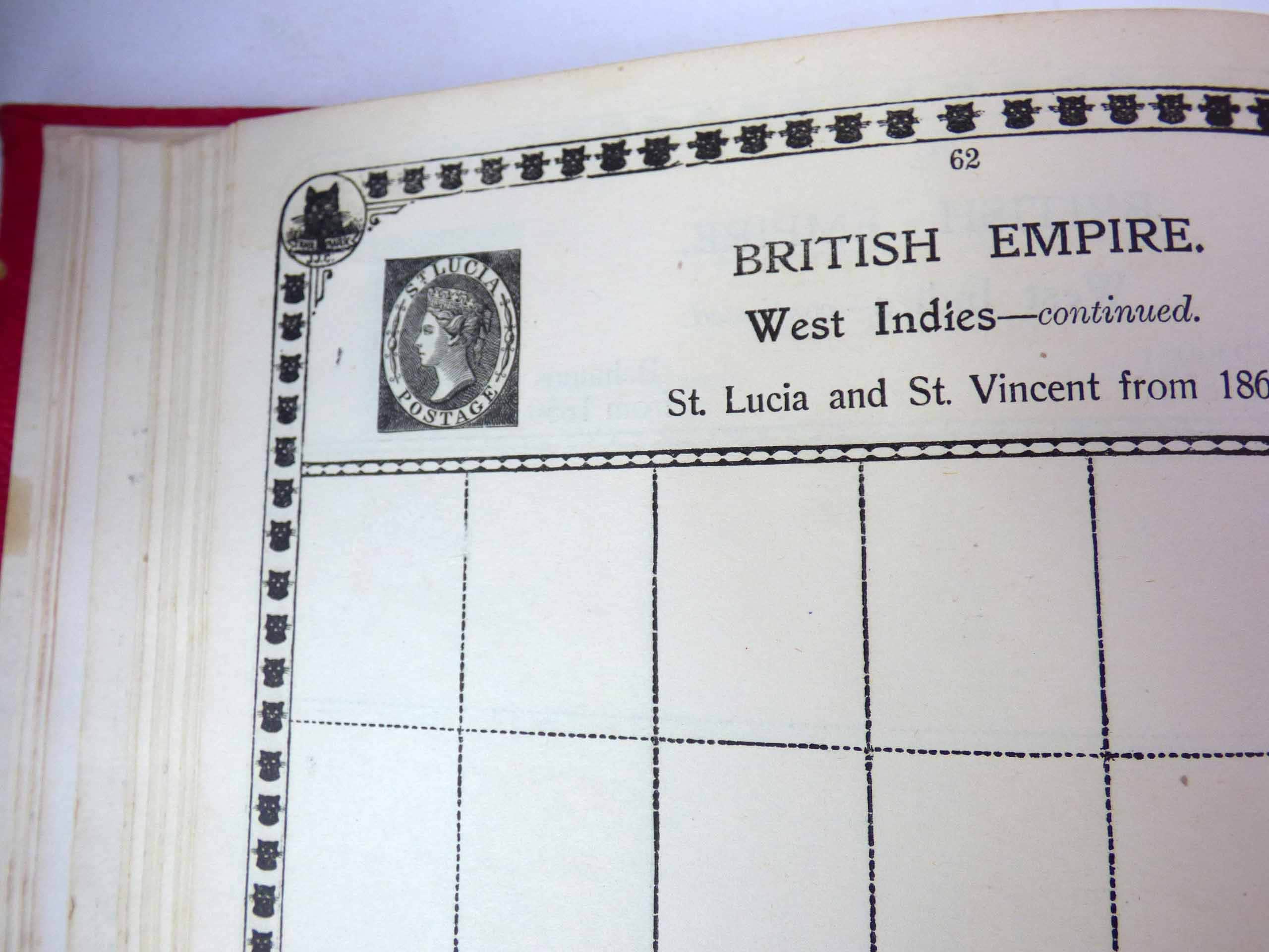 The book features pages for all the countries of the world. Each one has a lovely border of little black cats to frame your stamps beautifully, the arrangement and grouping for the stamp collecting book is by country. To the front and back are advertisements adding to this unique books charm.