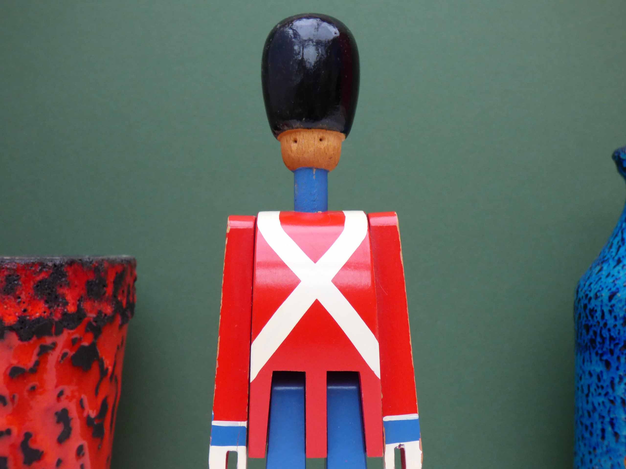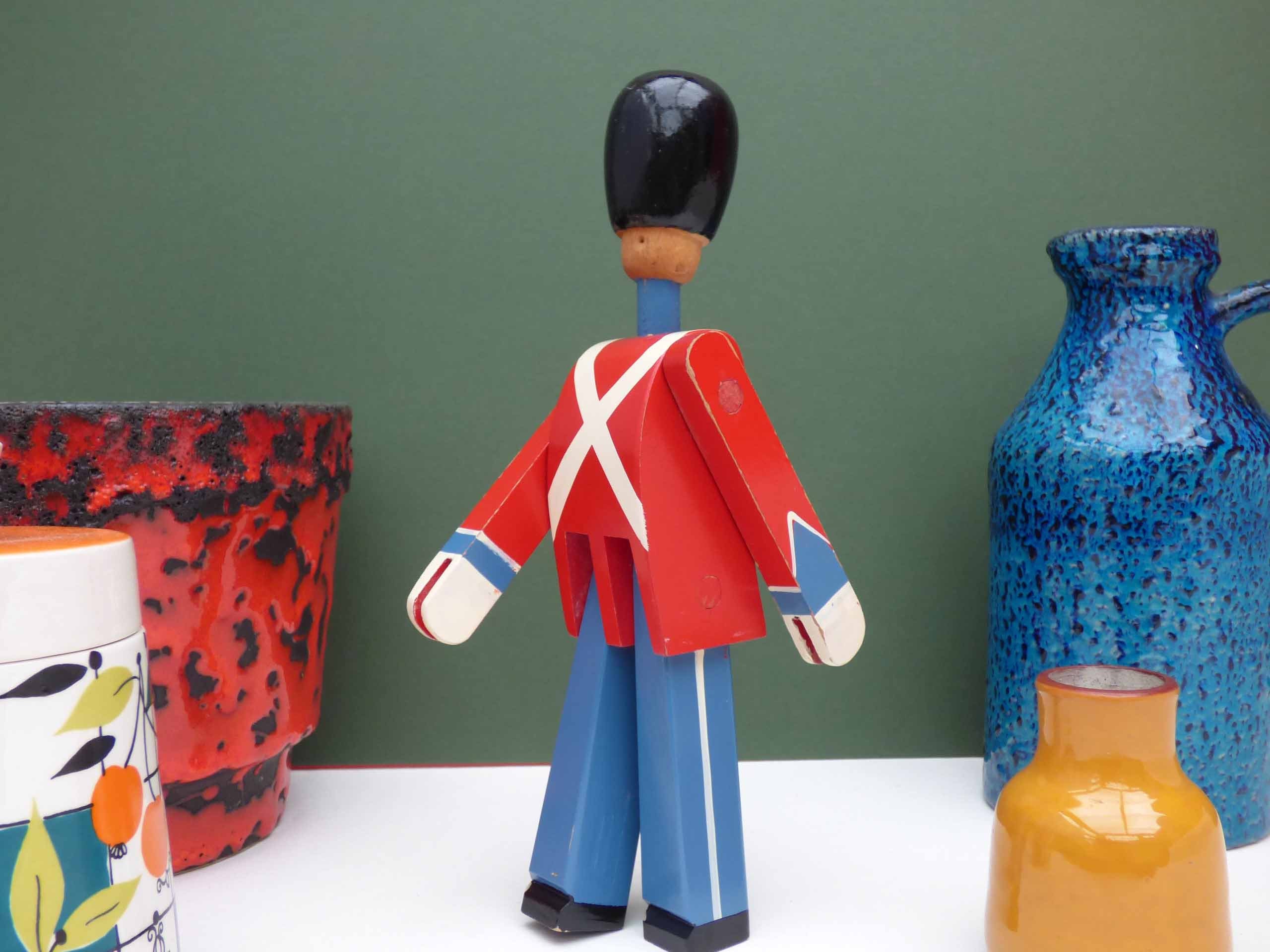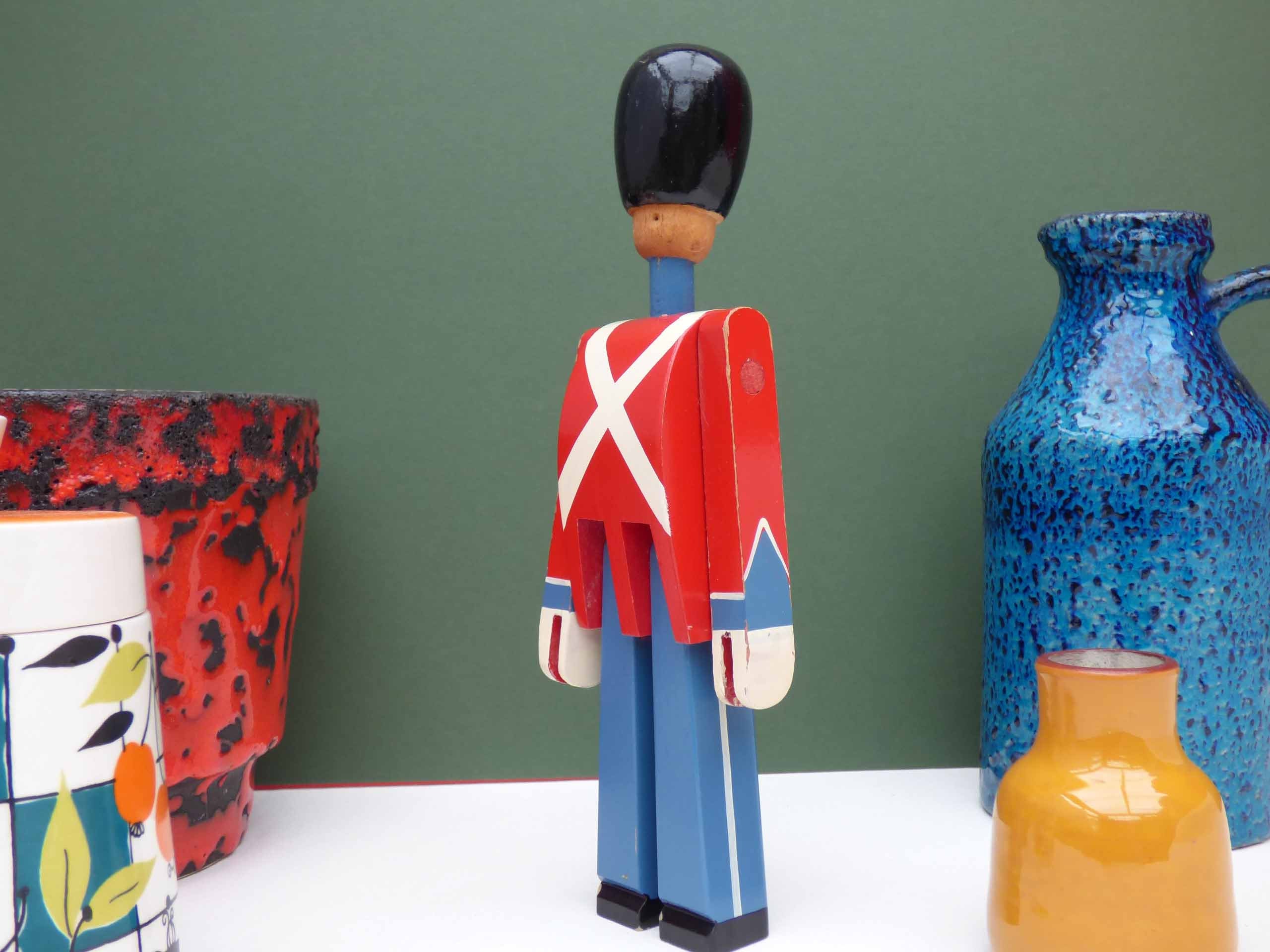 This wonderful wooden soldier/swordsman is a 1960's original production by Kay Bojesen, considered to be one of the finest toy makers in the world. This lovely soldier is in good but not perfect condition. There is crackling to the glaze of the paint on his bearskin hat and a little paint loss at the base, the paintwork overall is pretty good, with just a few areas of light ware, there’s also crack to the wood near his left hand, this has no movement and appears to be solid. So please study the photos well as these form part of the description .