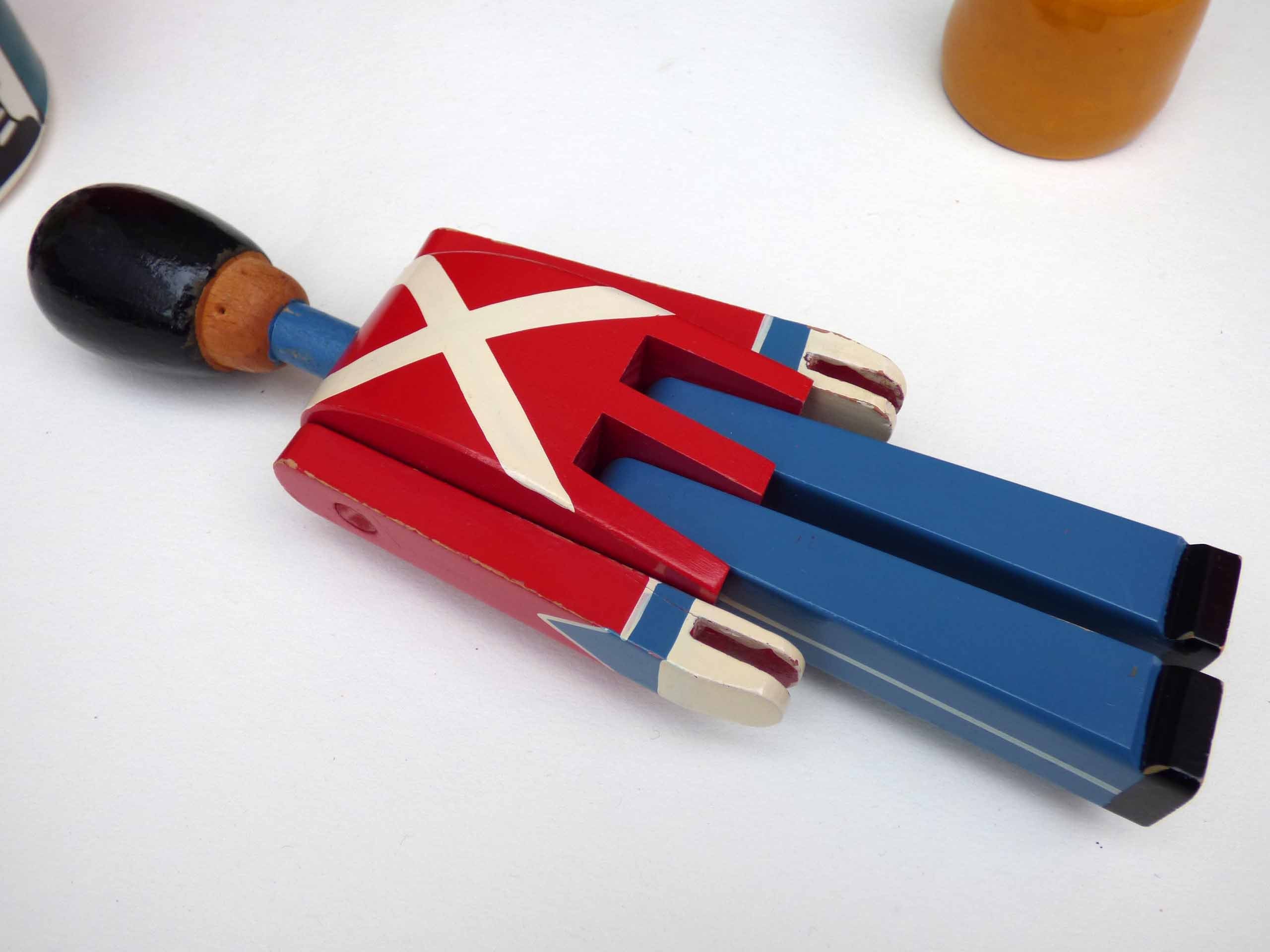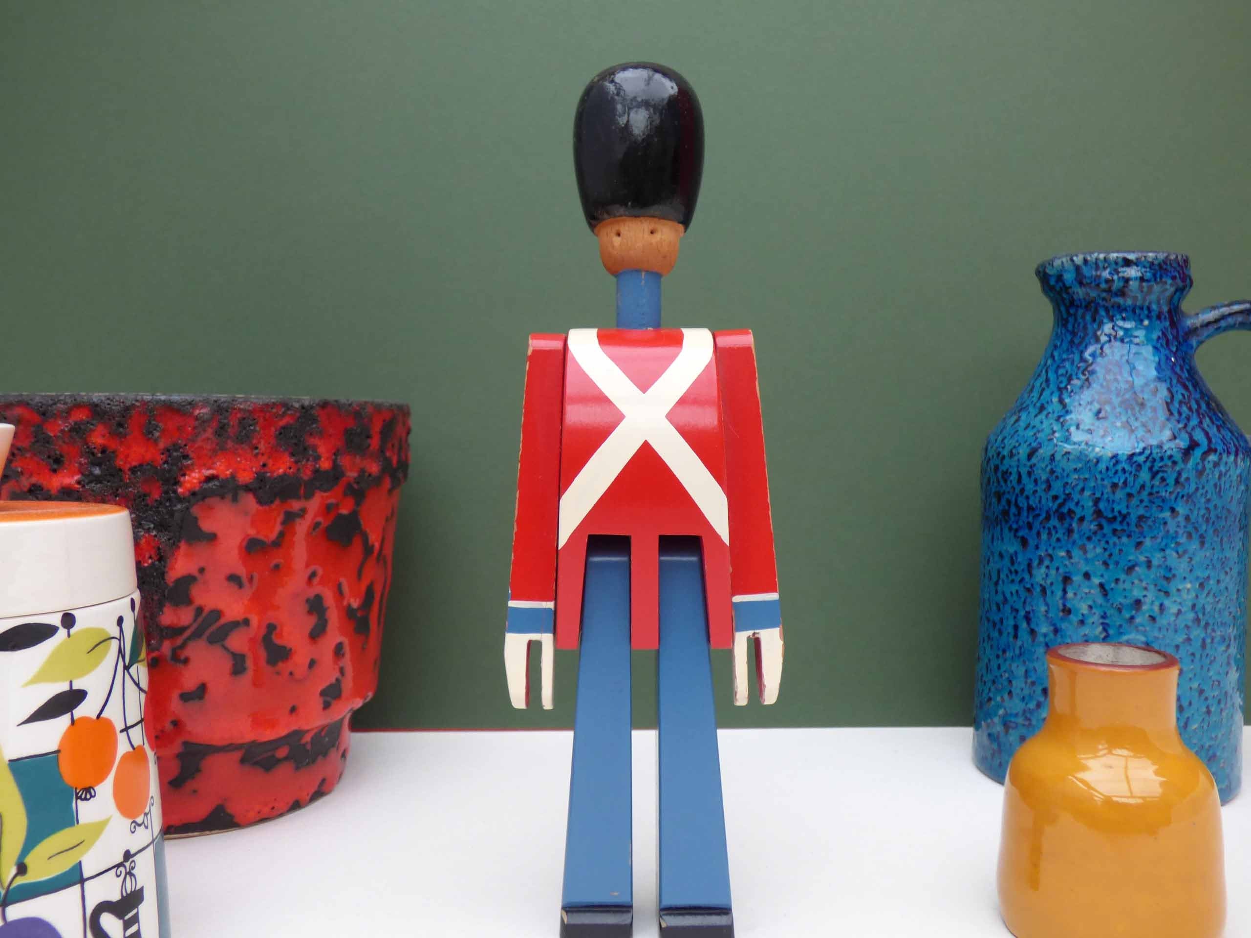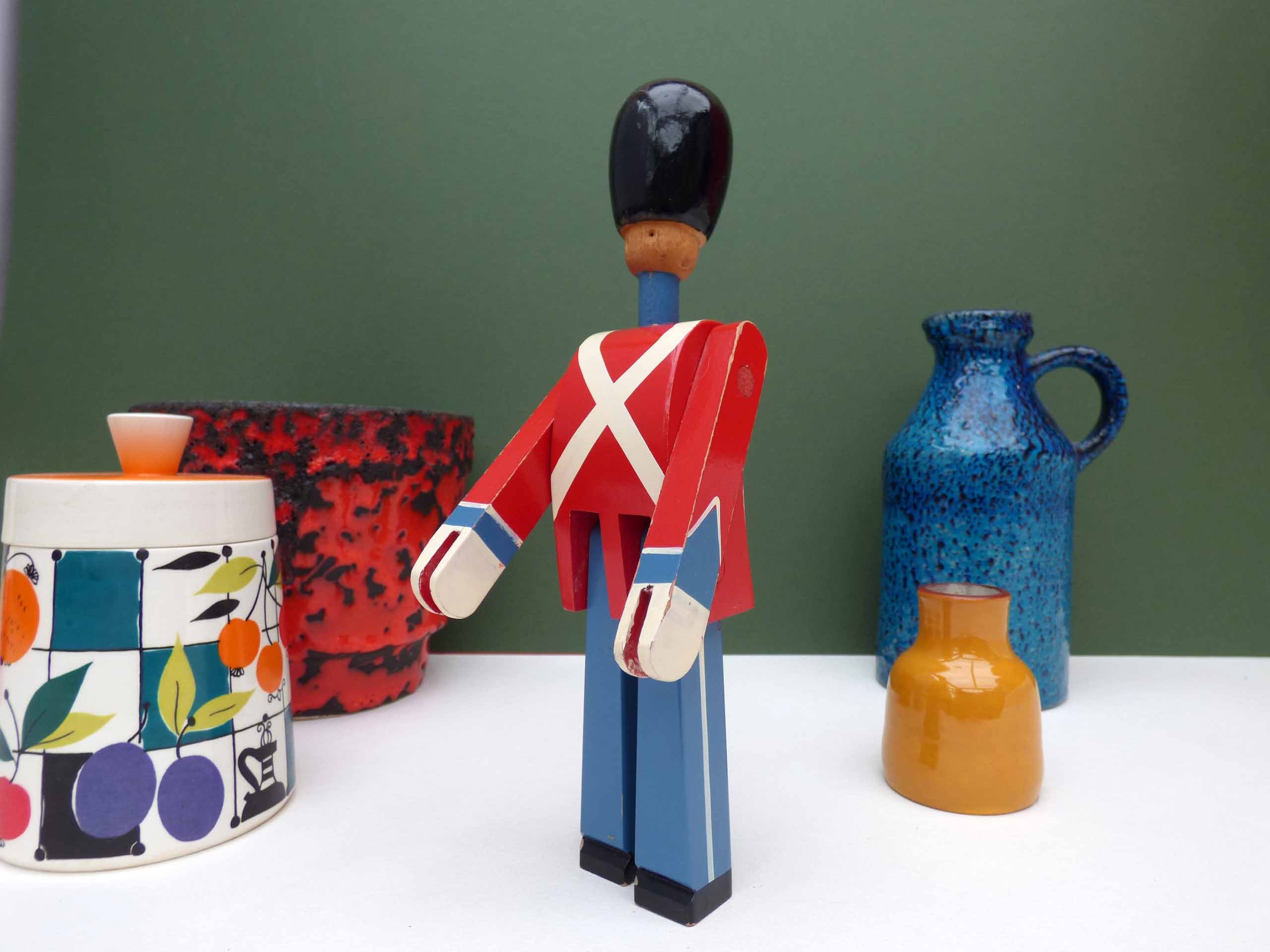 This wonderful wooden soldier/swordsman is a 1960's original production by Kay Bojesen, considered to be one of the finest toy makers in the world. This lovely soldier is in good but not perfect condition. There is crackling to the glaze of the paint on his bearskin hat and a little paint loss at the base, the paintwork overall is pretty good, with just a few areas of light ware, there’s also crack to the wood near his left hand, this has no movement and appears to be solid. So please study the photos well as these form part of the description .