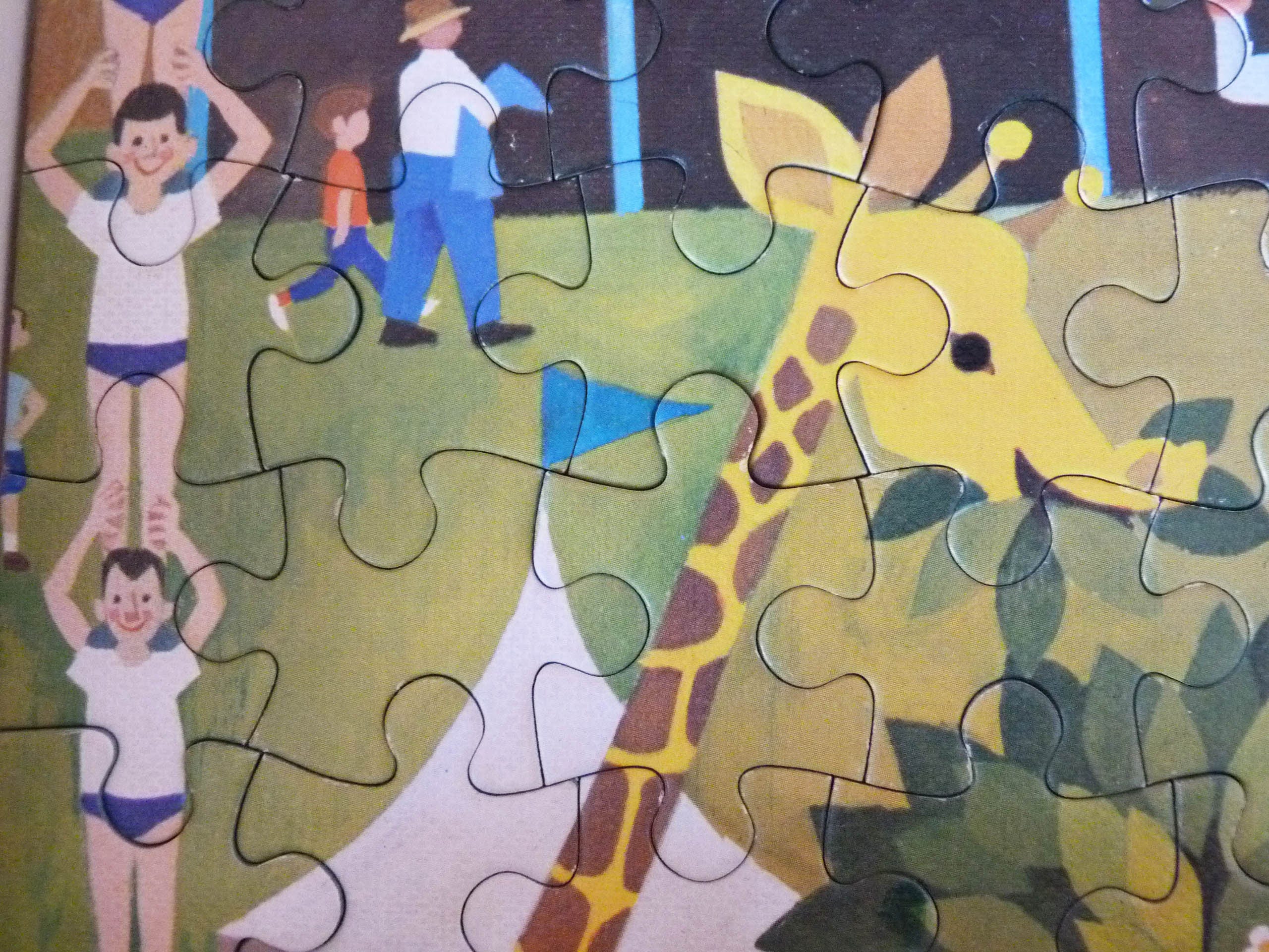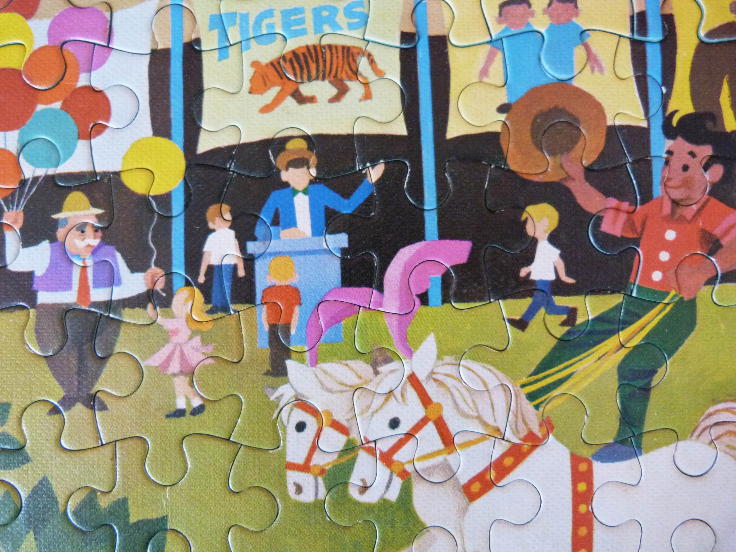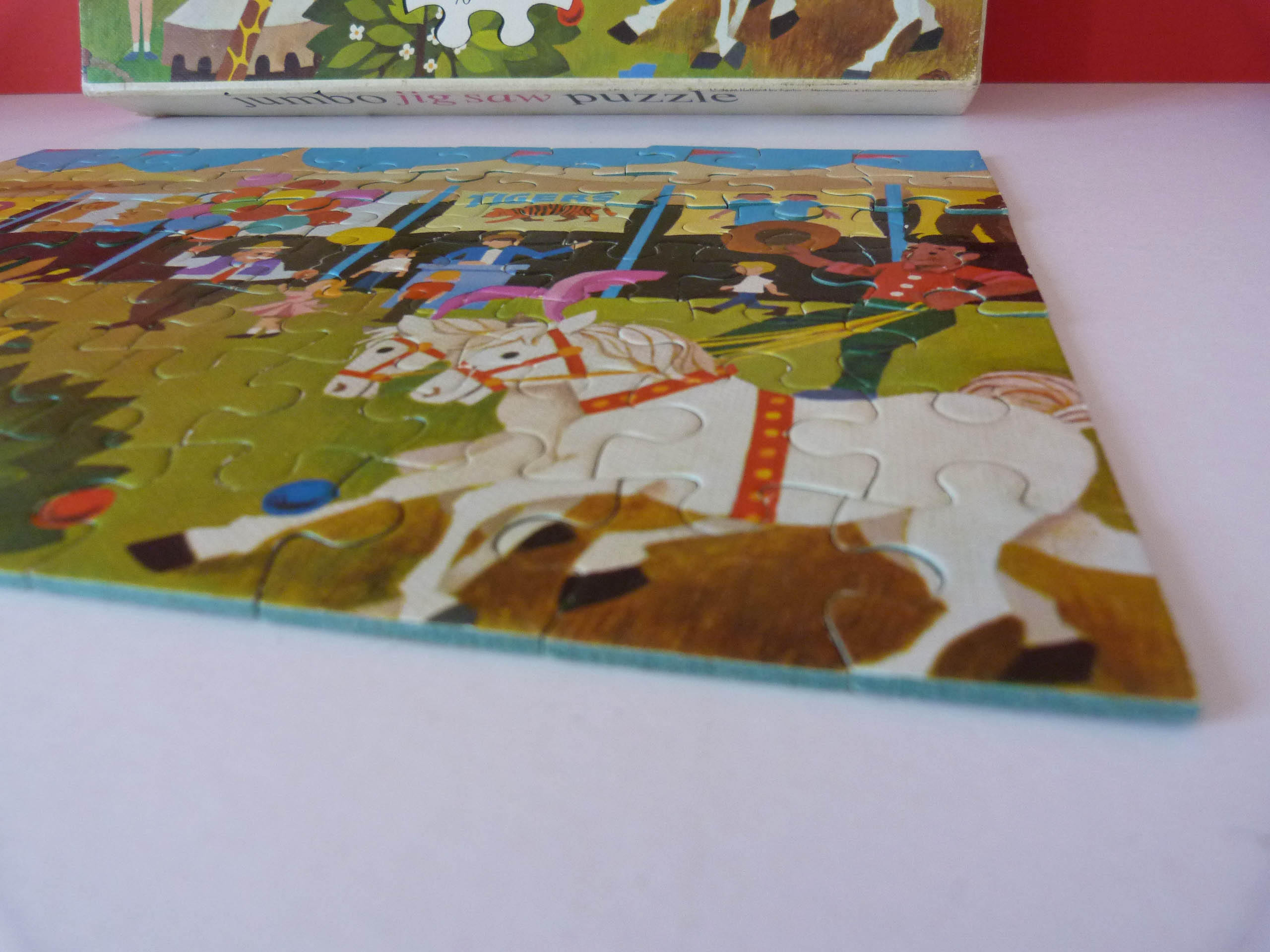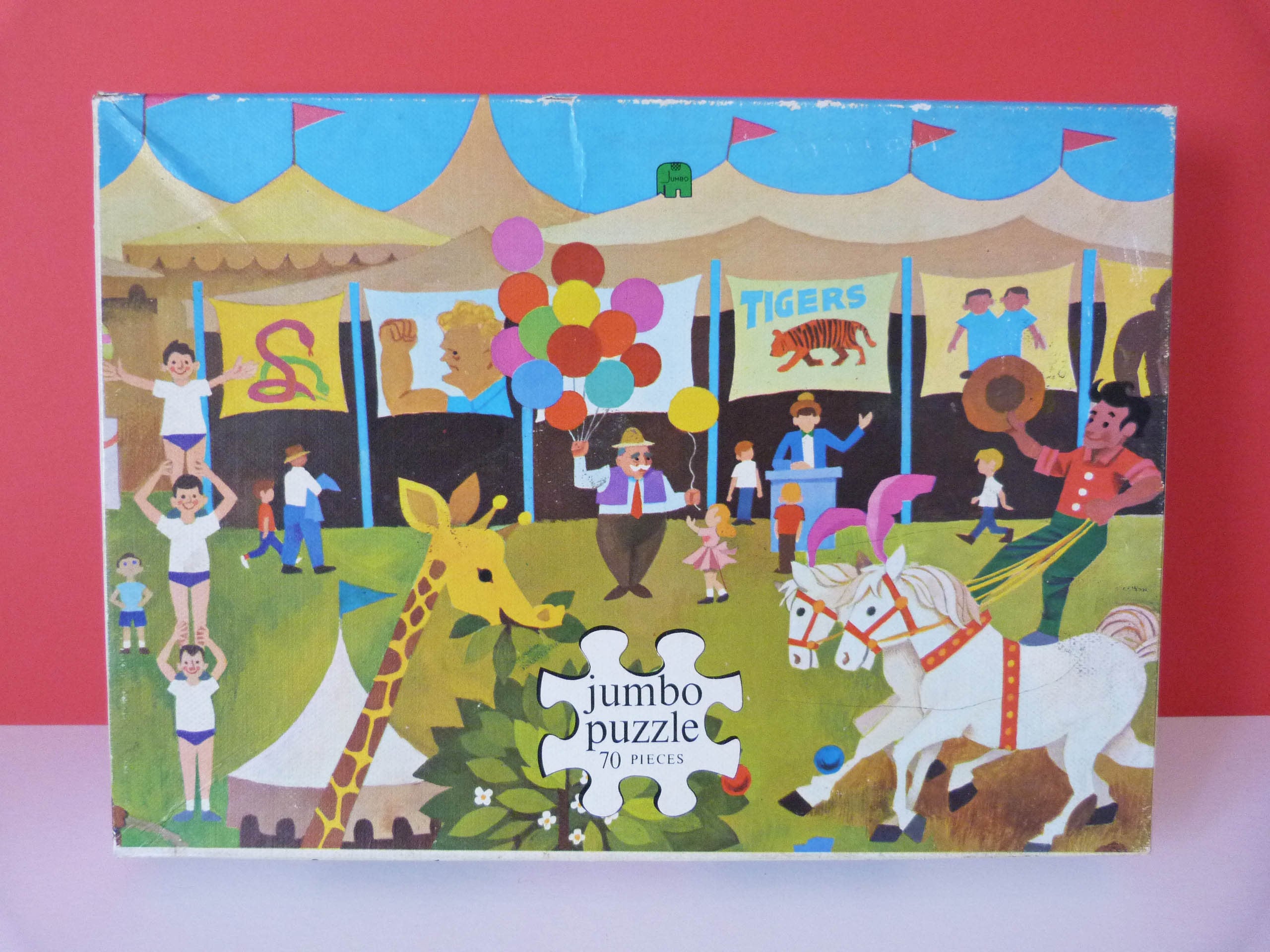 Lovely chunky vintage card jigsaw puzzle, depicting a circus scene, the puzzle was created by famous toy maker Jumbo of Holland, and measures 30cm x 21.5cm.