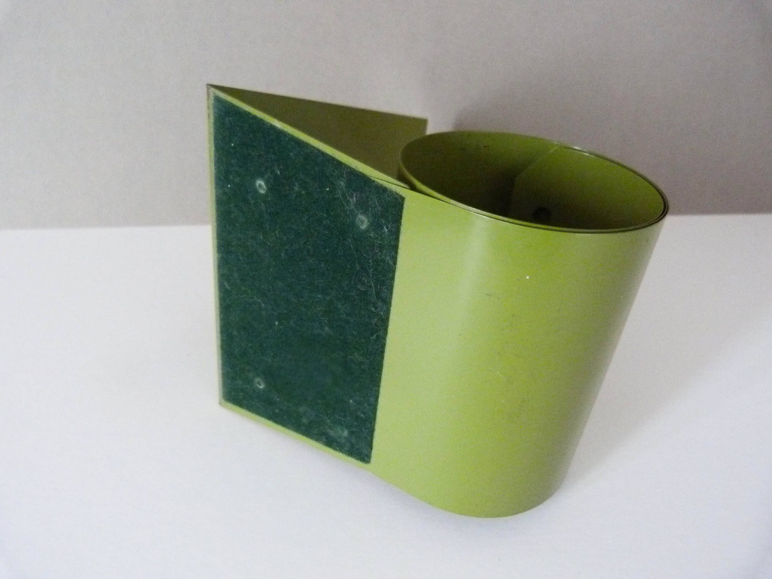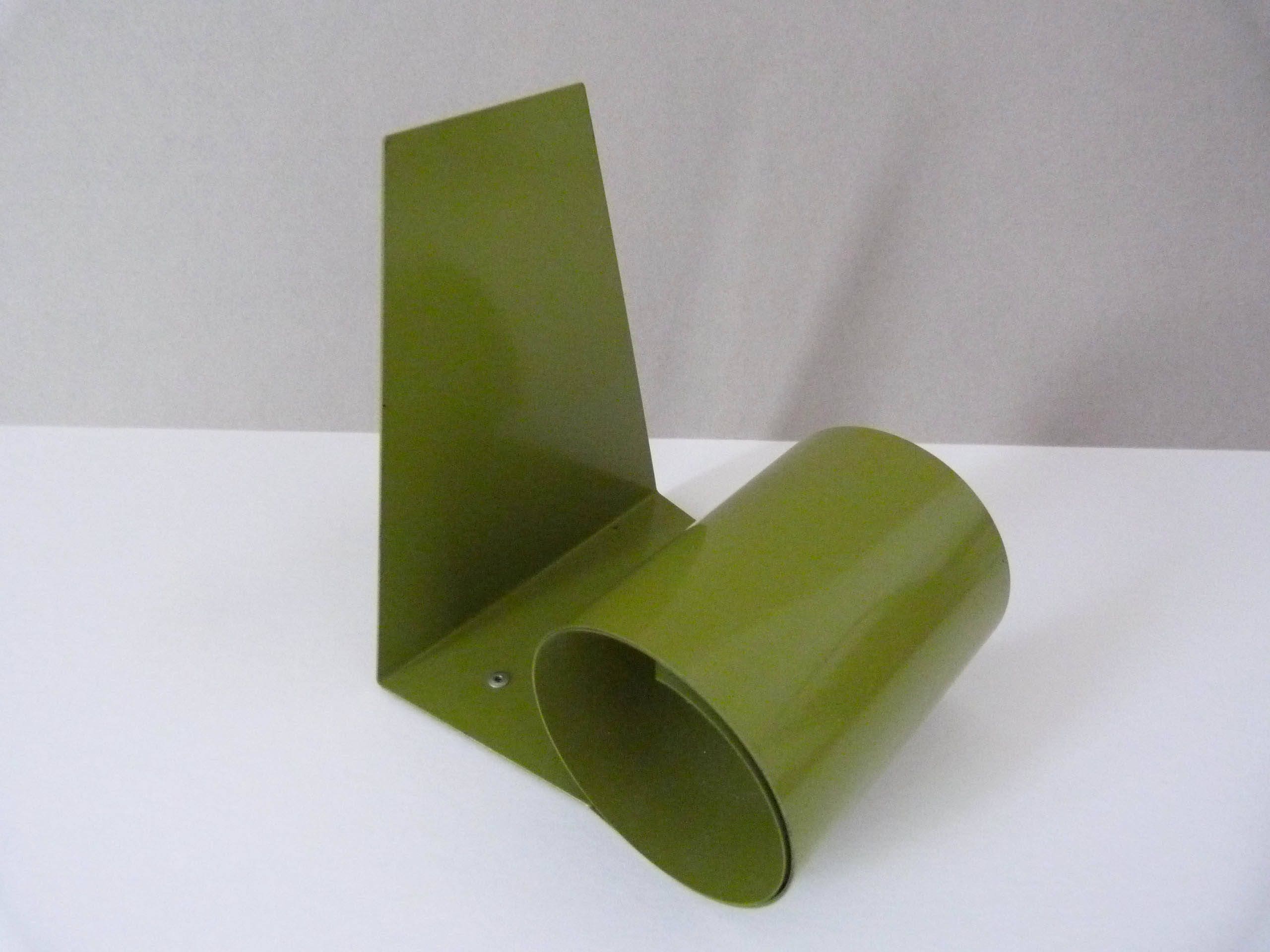 An ingenious modernist design, the simple solution to keep your books together, a favorite with 1970's habitat obsessed students. This bright pea green spring bookend measures 15 cm tall and will hold up to around 60cm of books in length.