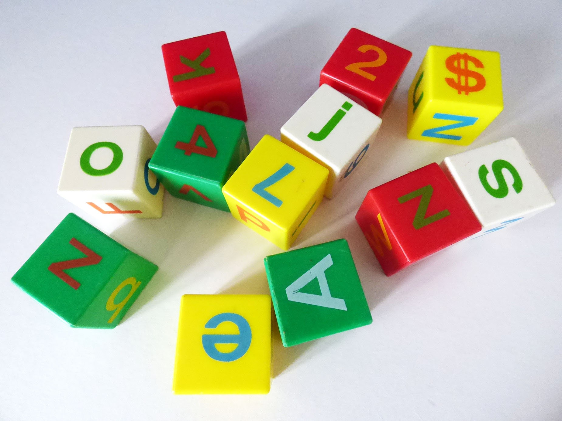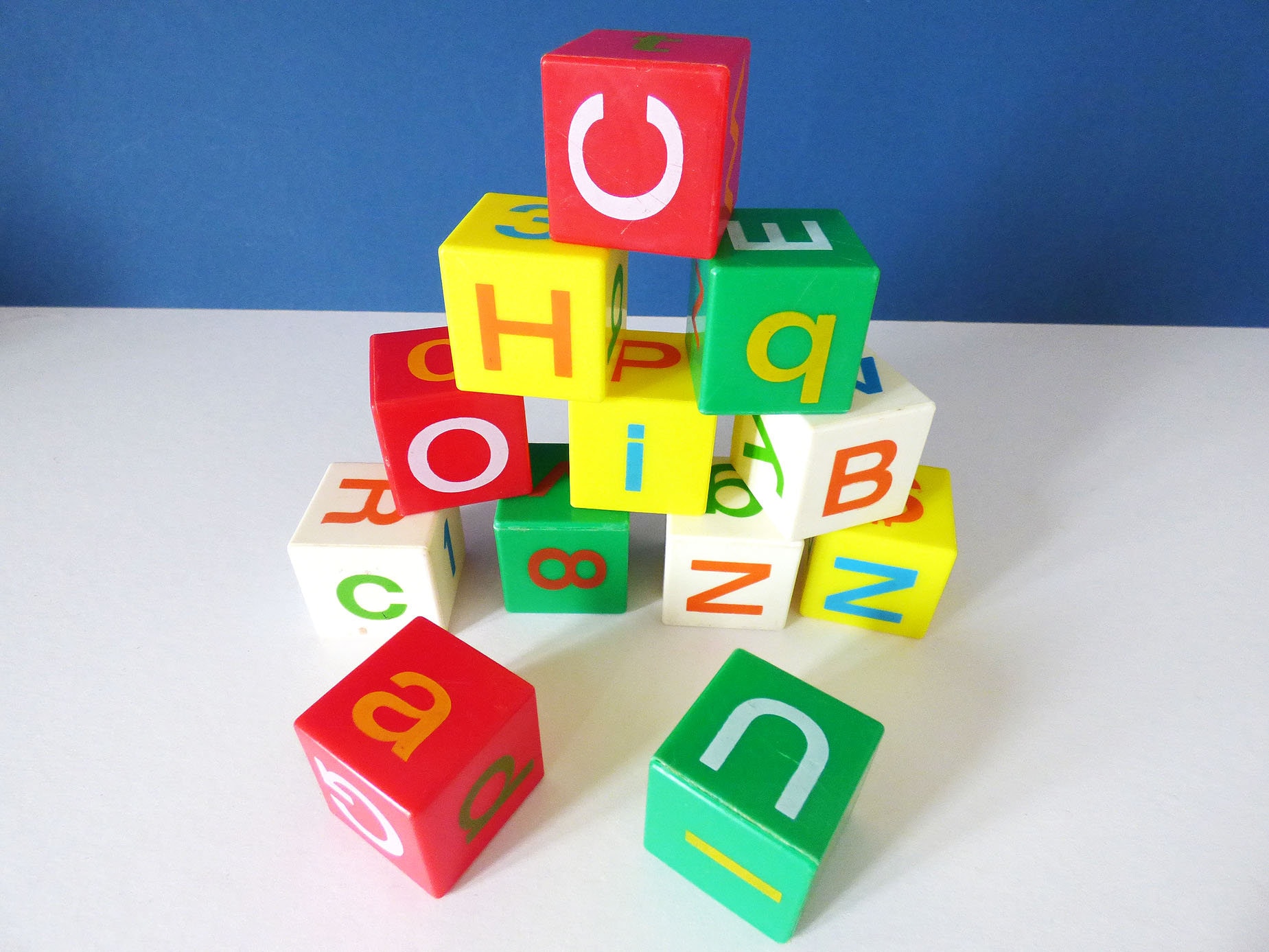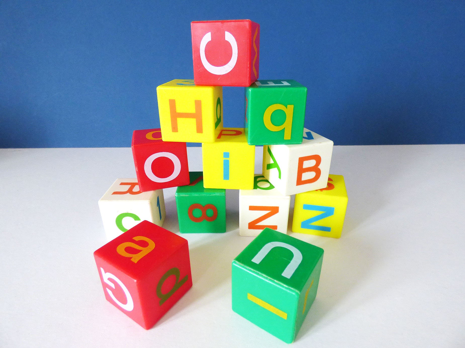 Lovely set of 12 plastic cubes, each printed with numbers, symbols and letters.