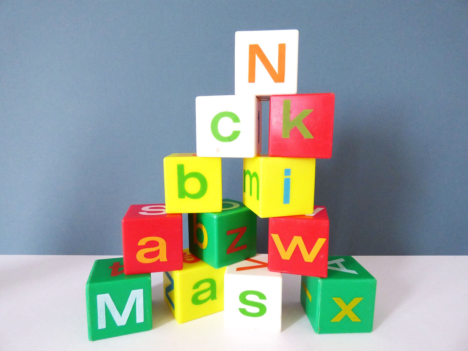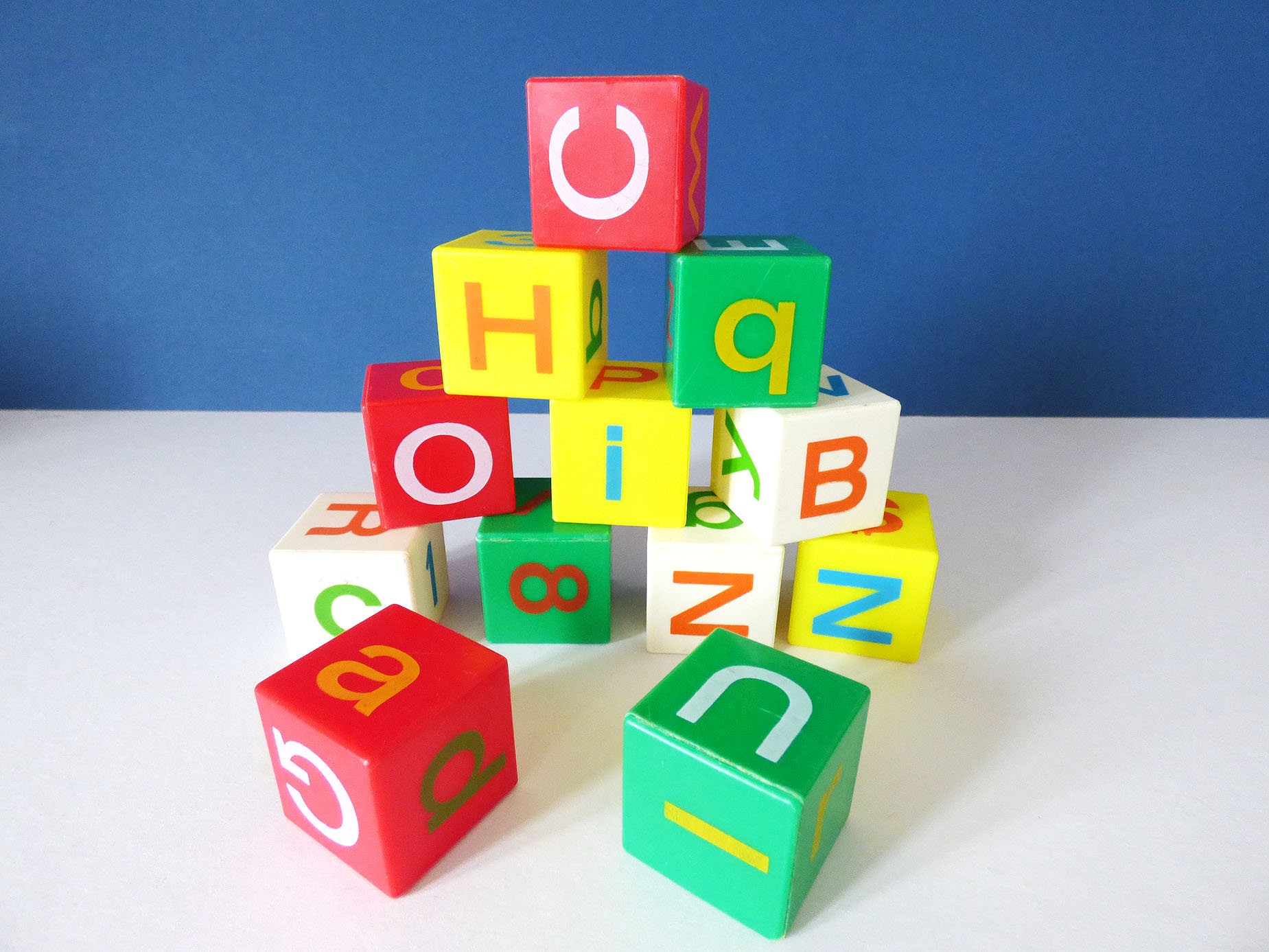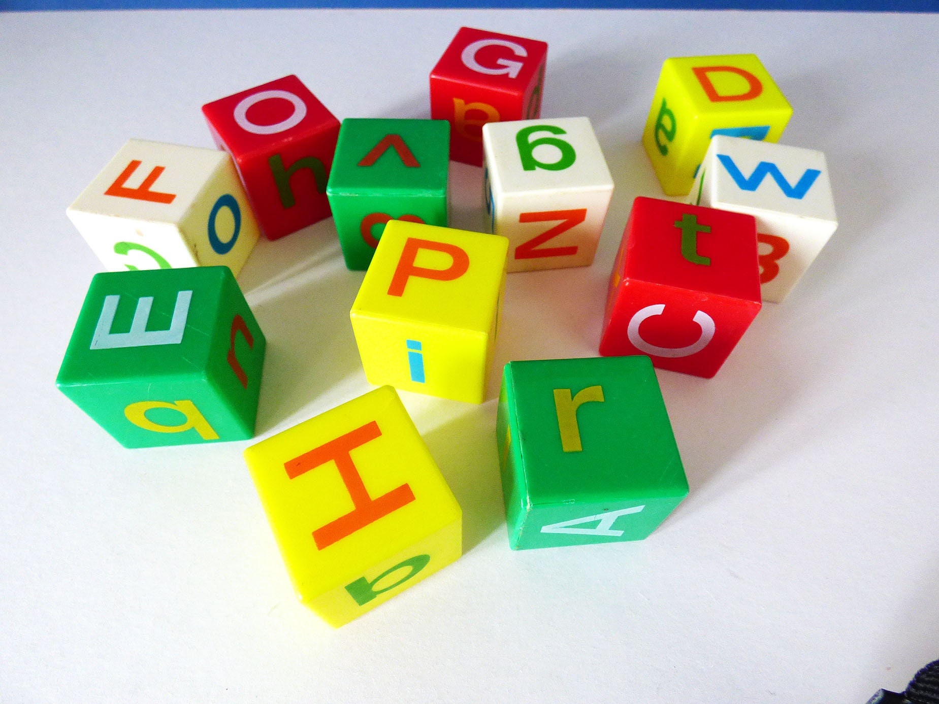 Lovely set of 12 plastic cubes, each printed with numbers, symbols and letters.