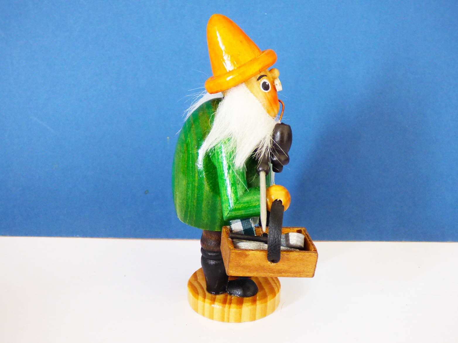 Created in Germany in the early 1980's this beautiful little wooden man, has the added bonus of being an incense burner, you will need to place him on something like a plate, then put an incense cone underneath him, and the smoke will appear to come out of his pipe.