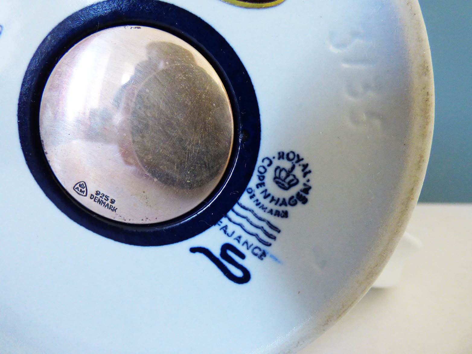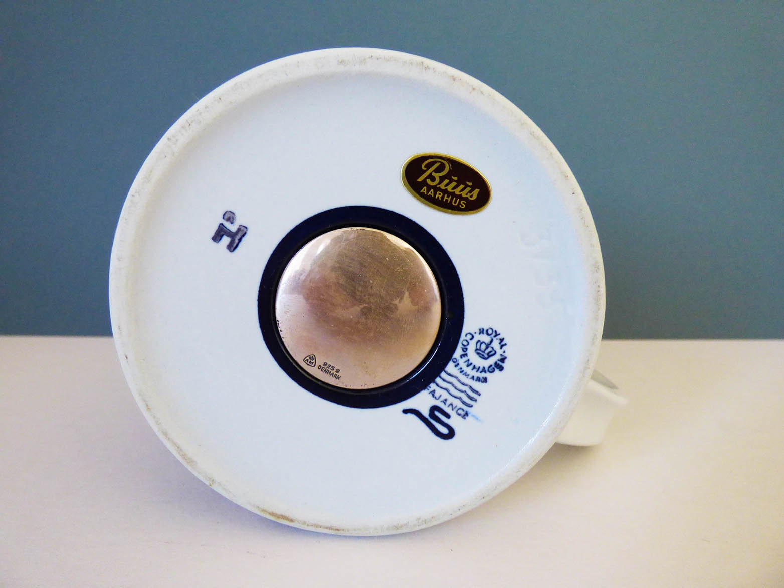 Each year Royal Copenhagen would commission a different artist to design there annual mug, and the large ones like this one, have a silver nugget in the base, which can be engraved. making these mugs perfect for gifts, birthdays, wedding anniversary, a special dates spring to mind.