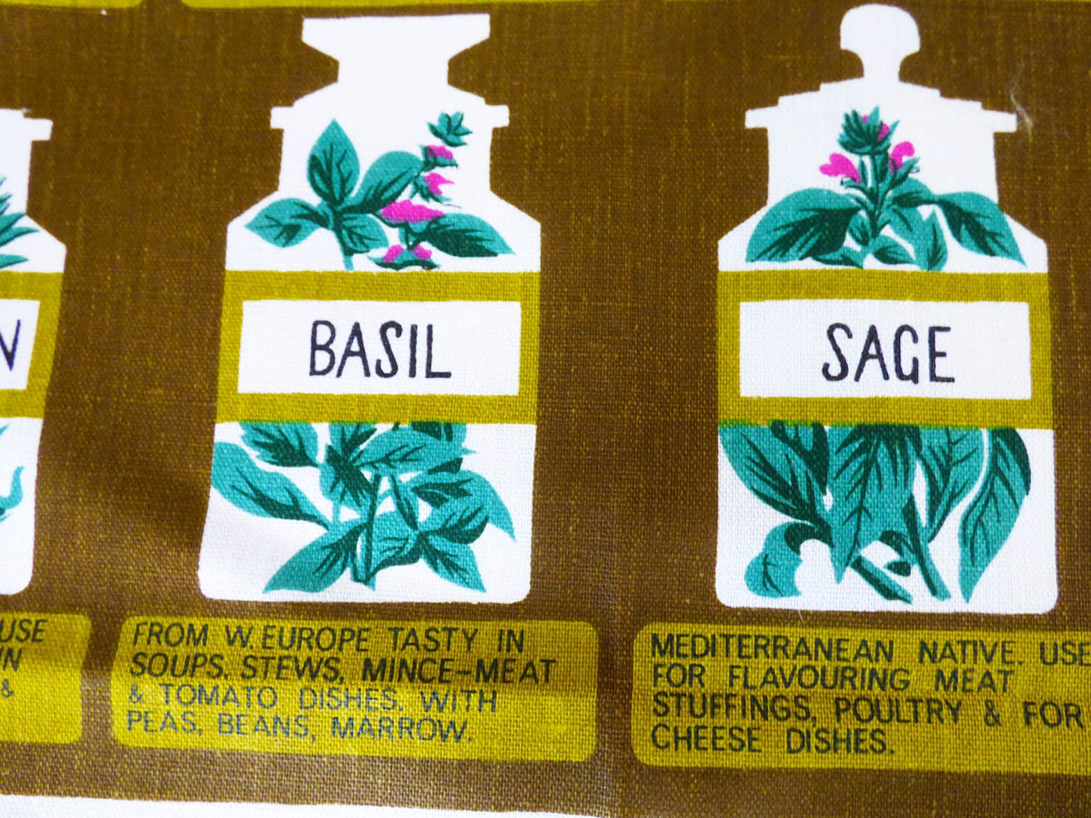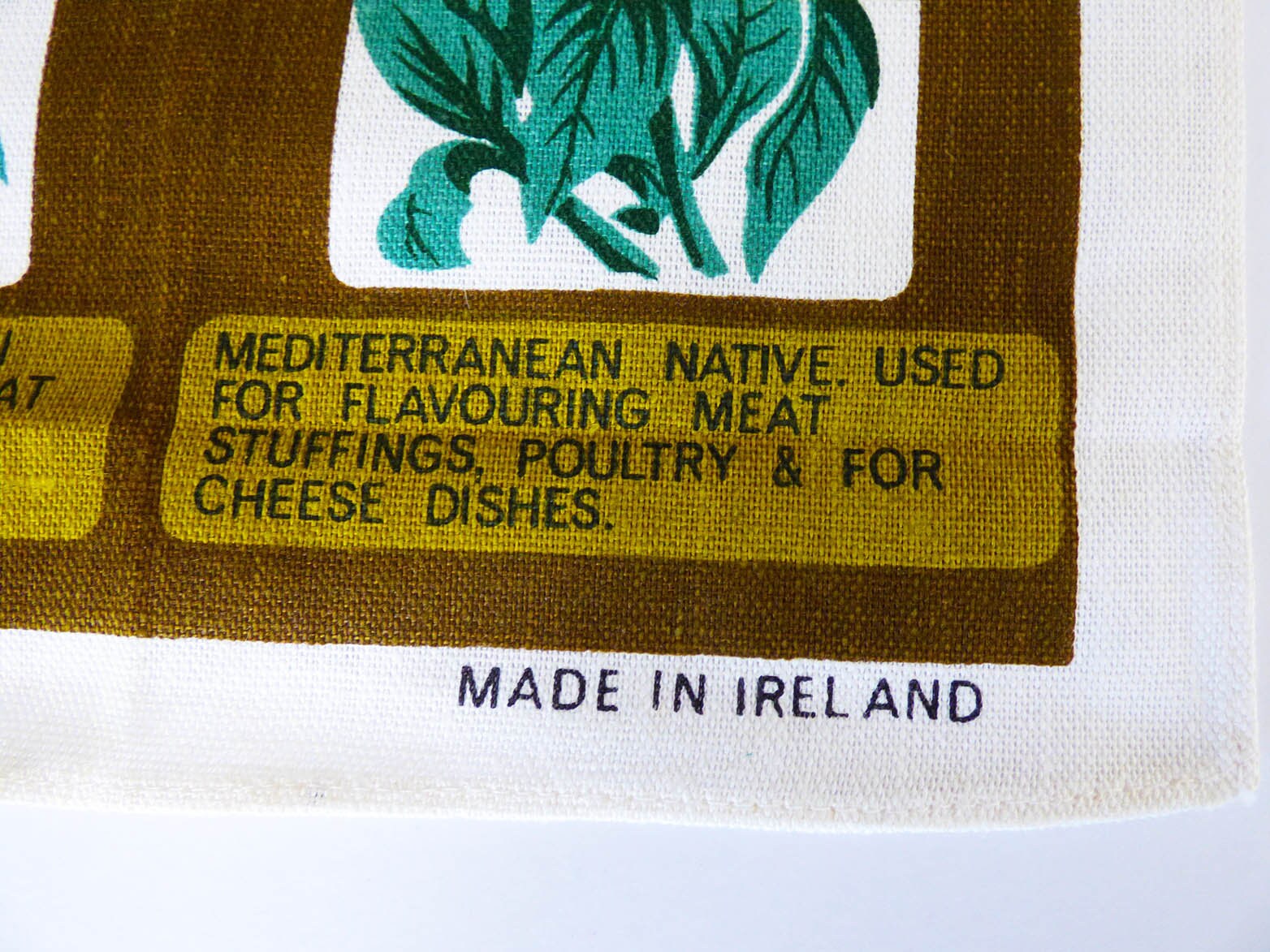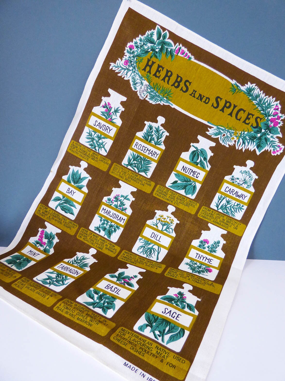 Beautiful large linen tea towel made by Ulster of Ireland, Entitled Herbs and spices, it depicts many herbs and spices with a brief description of each one, this is an absolute classic, we love it.
