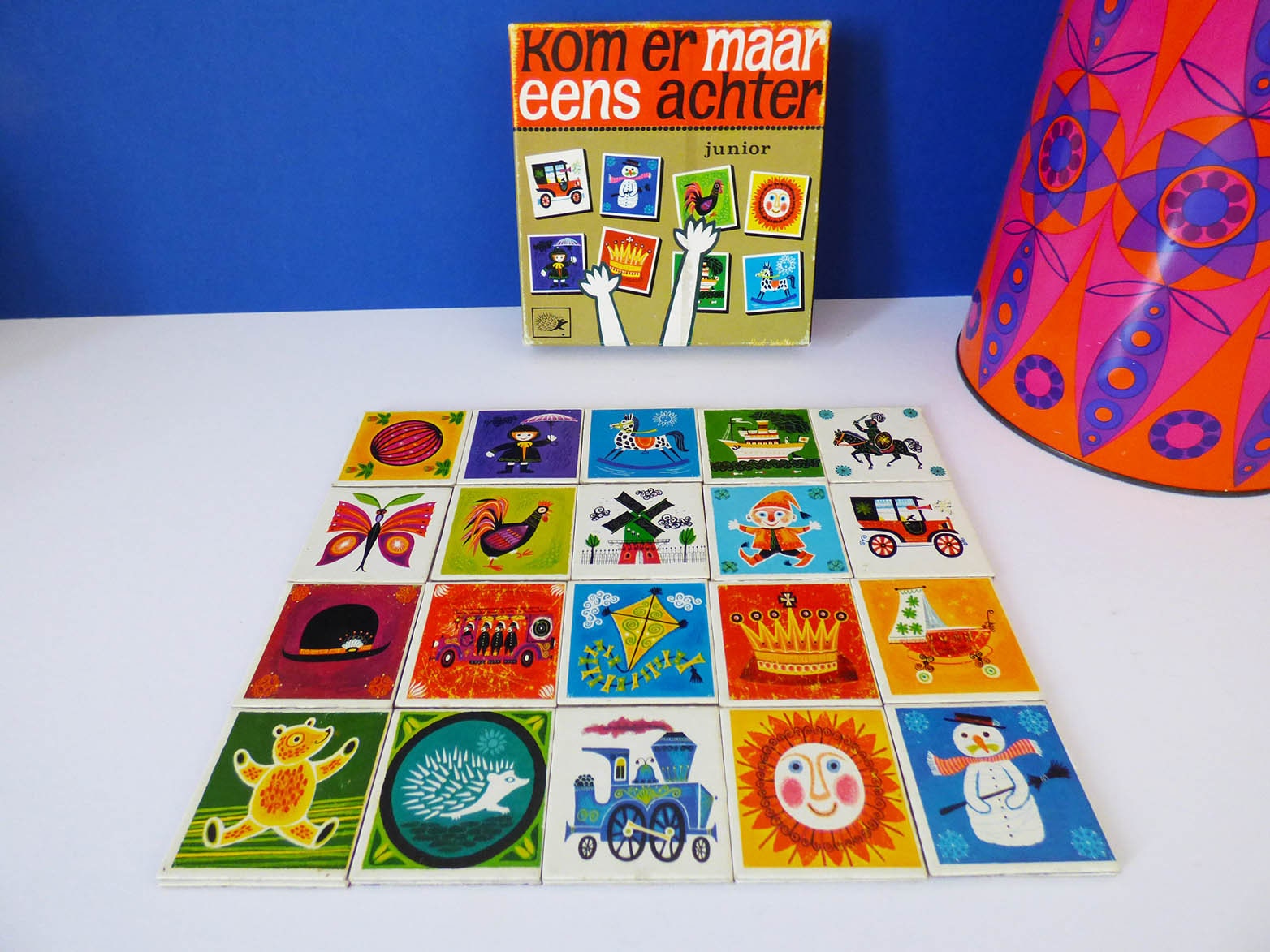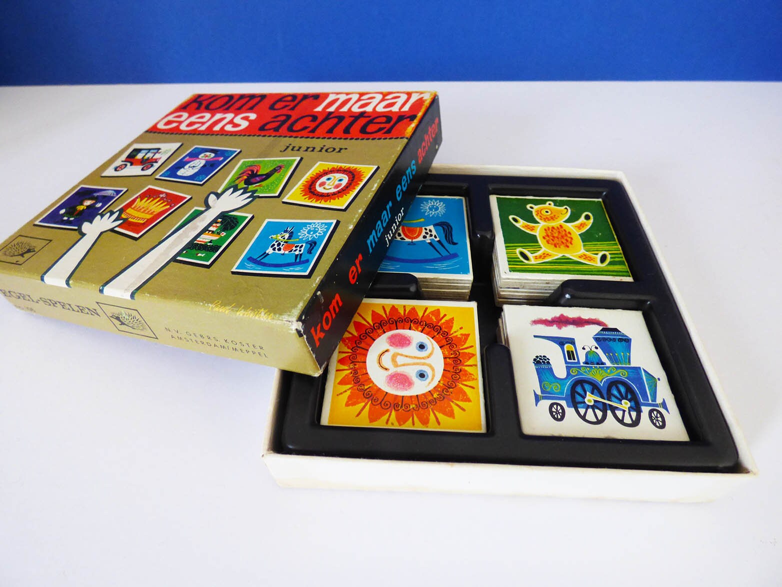 A wonderful 1960's Junior version of the wonderful classic Dutch memory game "Kom er maar eens achter," the game is complete, there are 20 pairs.