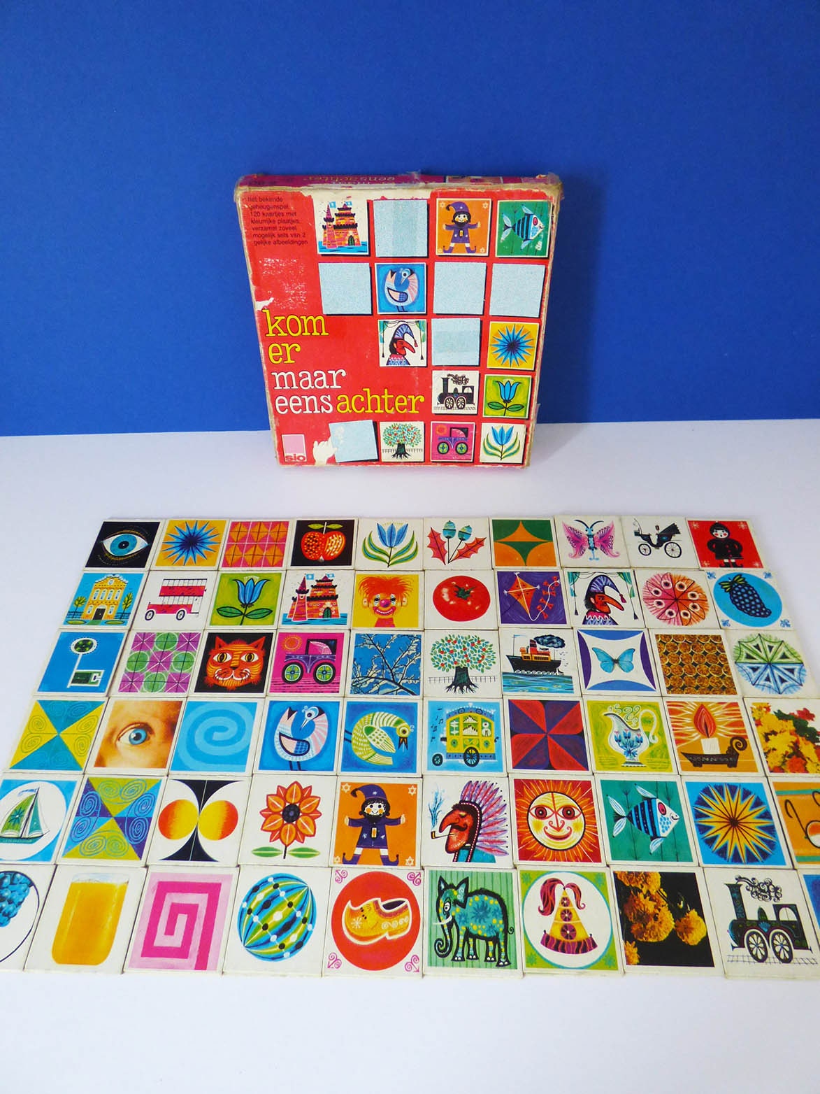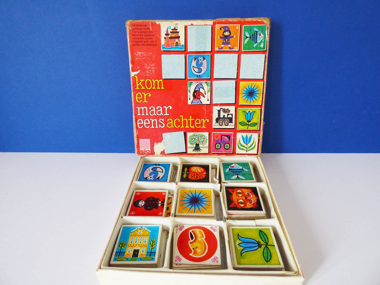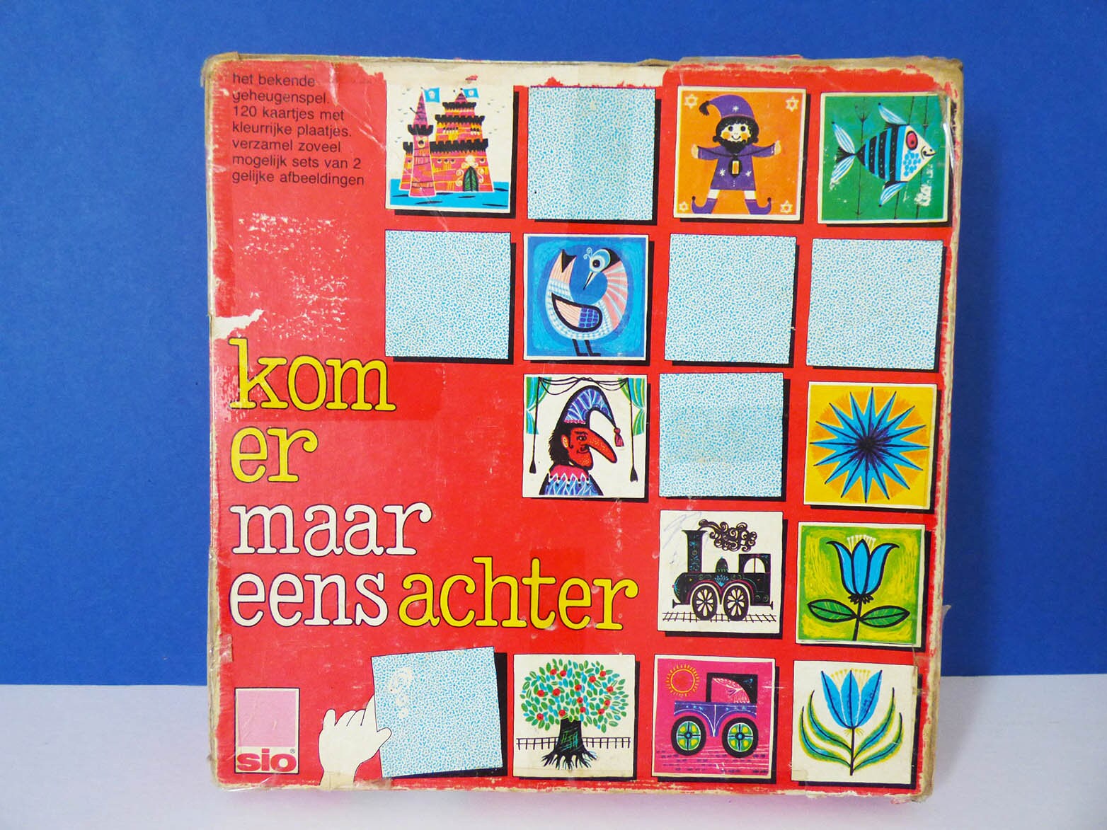 A wonderful 1980's version of the wonderful classic Dutch memory game "Kom er maar eens achter," created by Sio. the game is complete, there are 60 pairs, that's 120 cards in total.