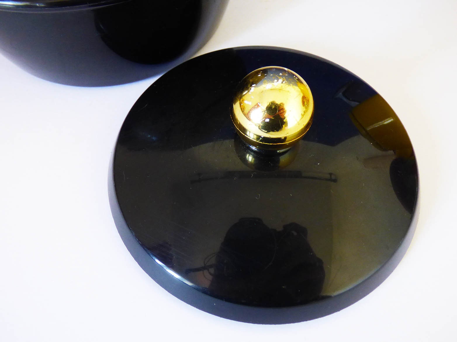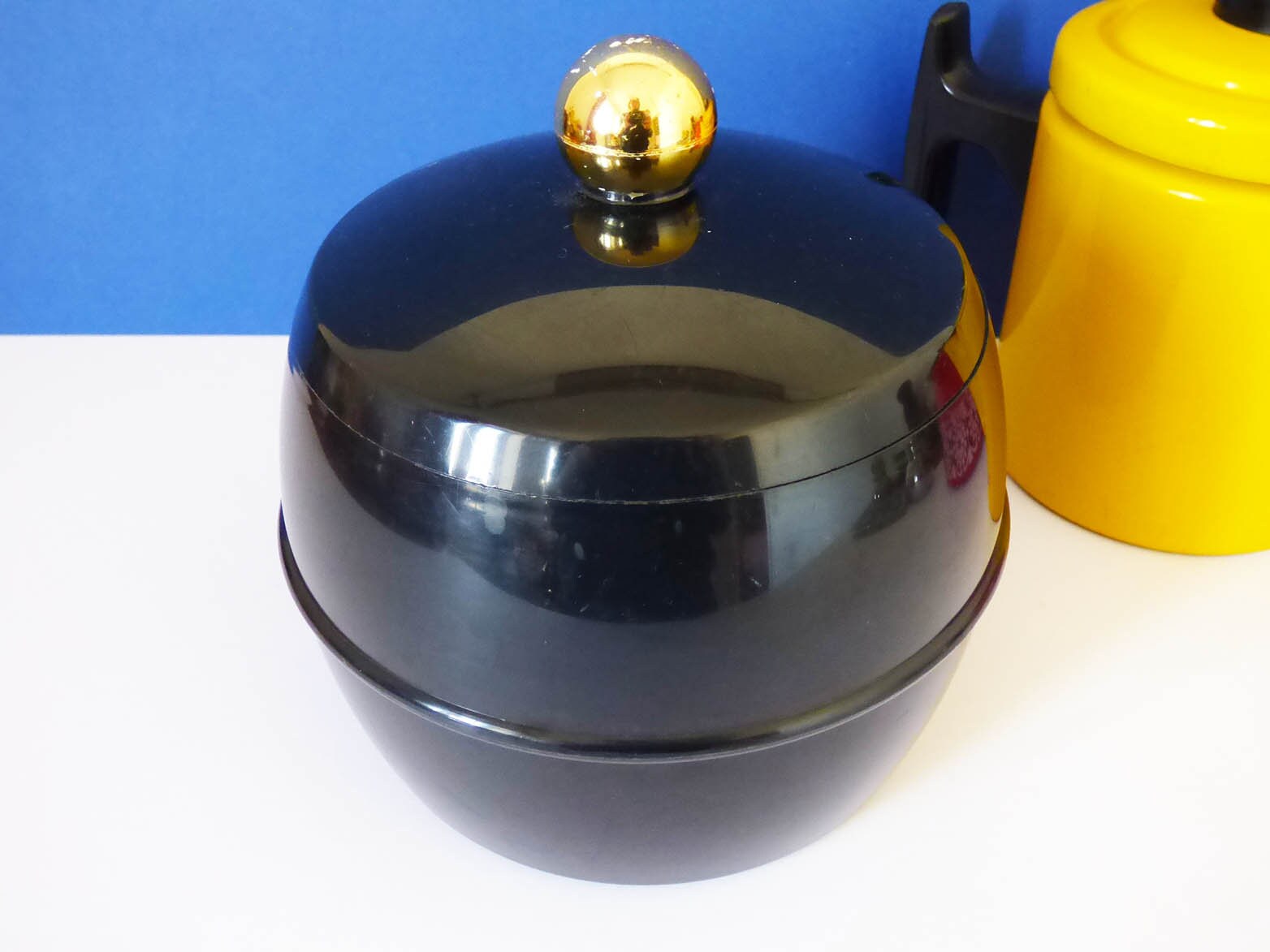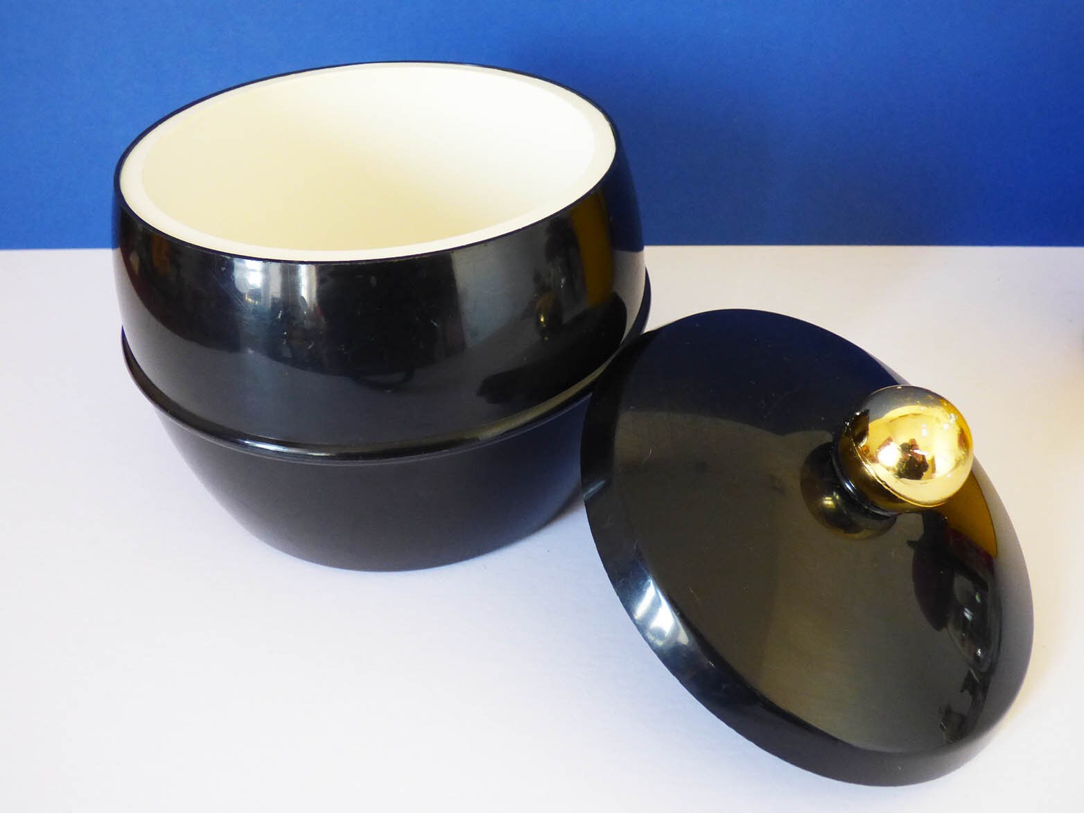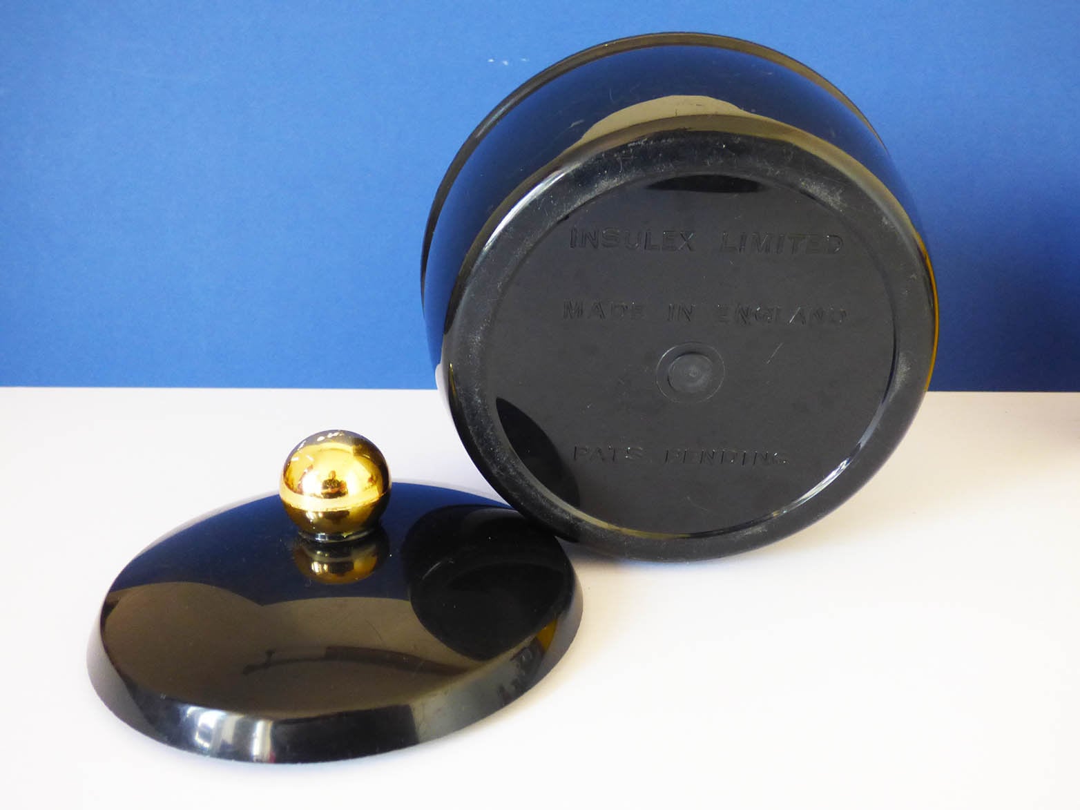 A design classic, vintage ice bucket, created by Insulex of England. produced in black plastic, with a white interior, the ice buckets in Good condition with some wear and light surface scratches to the black plastic.