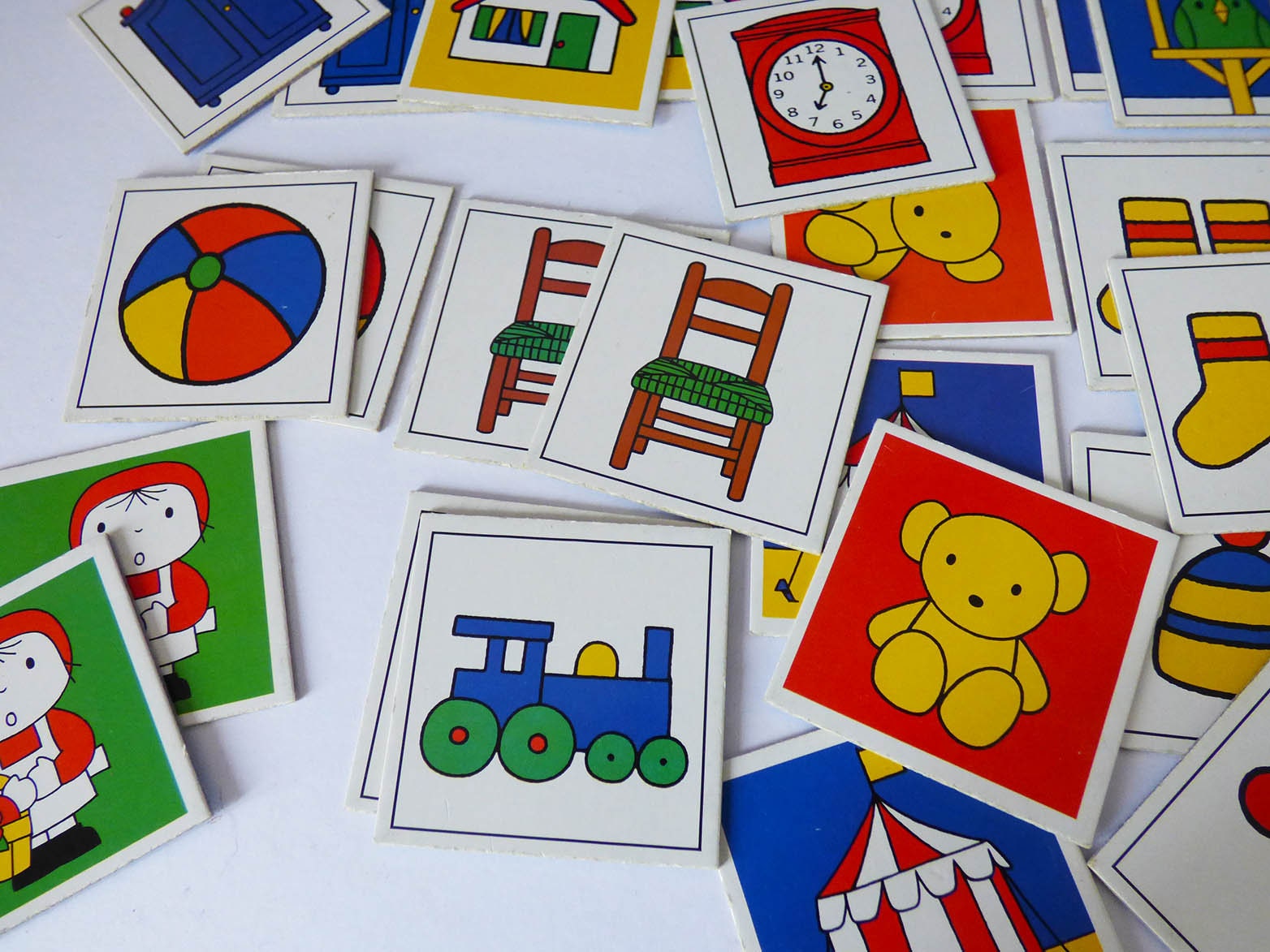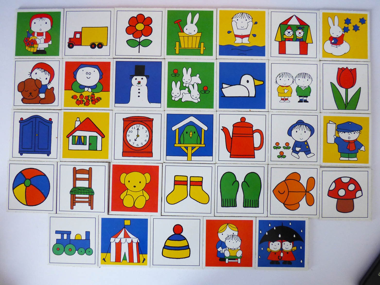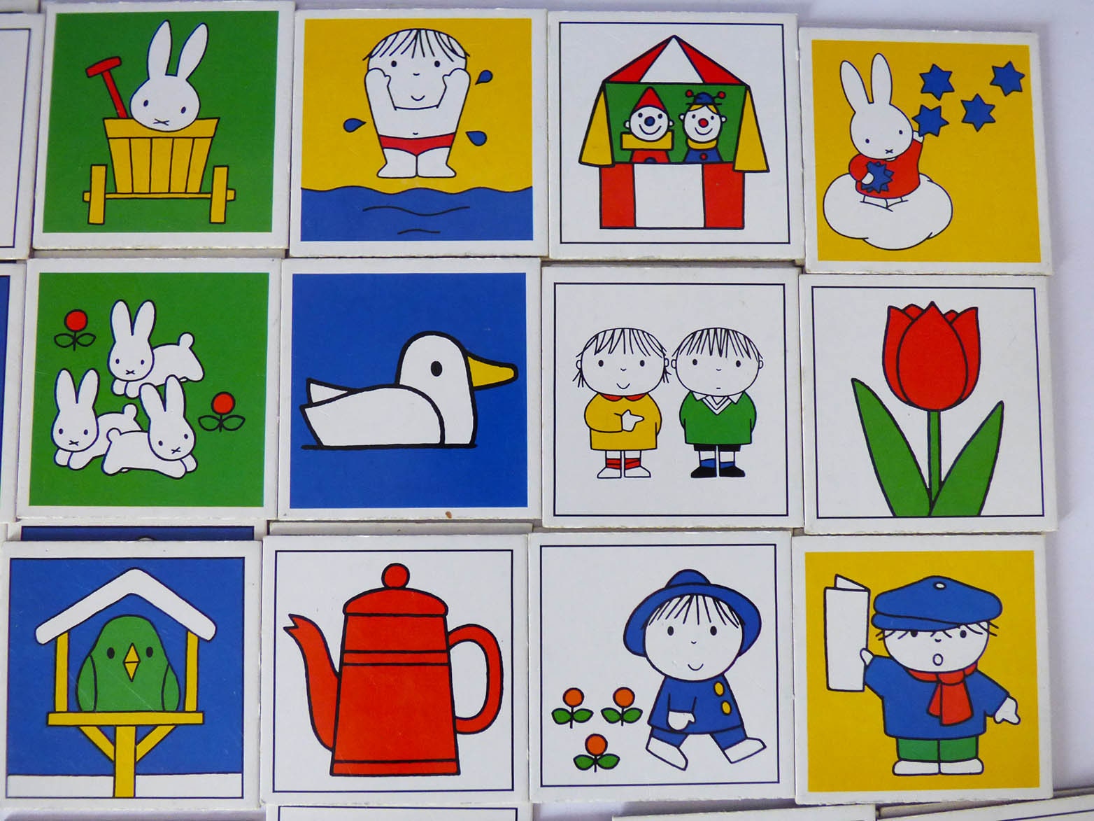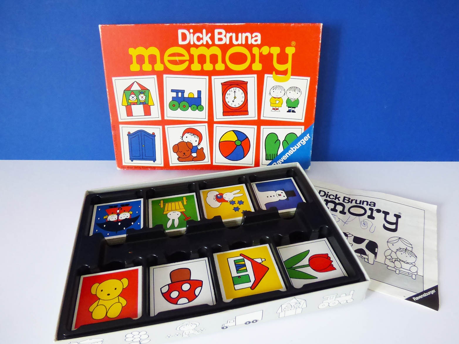 Original 1981 chunky memory game with classic images of Dick Bruna's characters. Created by Ravensburger, the game is in excellent condition, The game is unfortunately not complete there are 33 pairs, rather than the 36 pairs stated on the box. So that's 66 cards in total but at least all the matching cards are present.