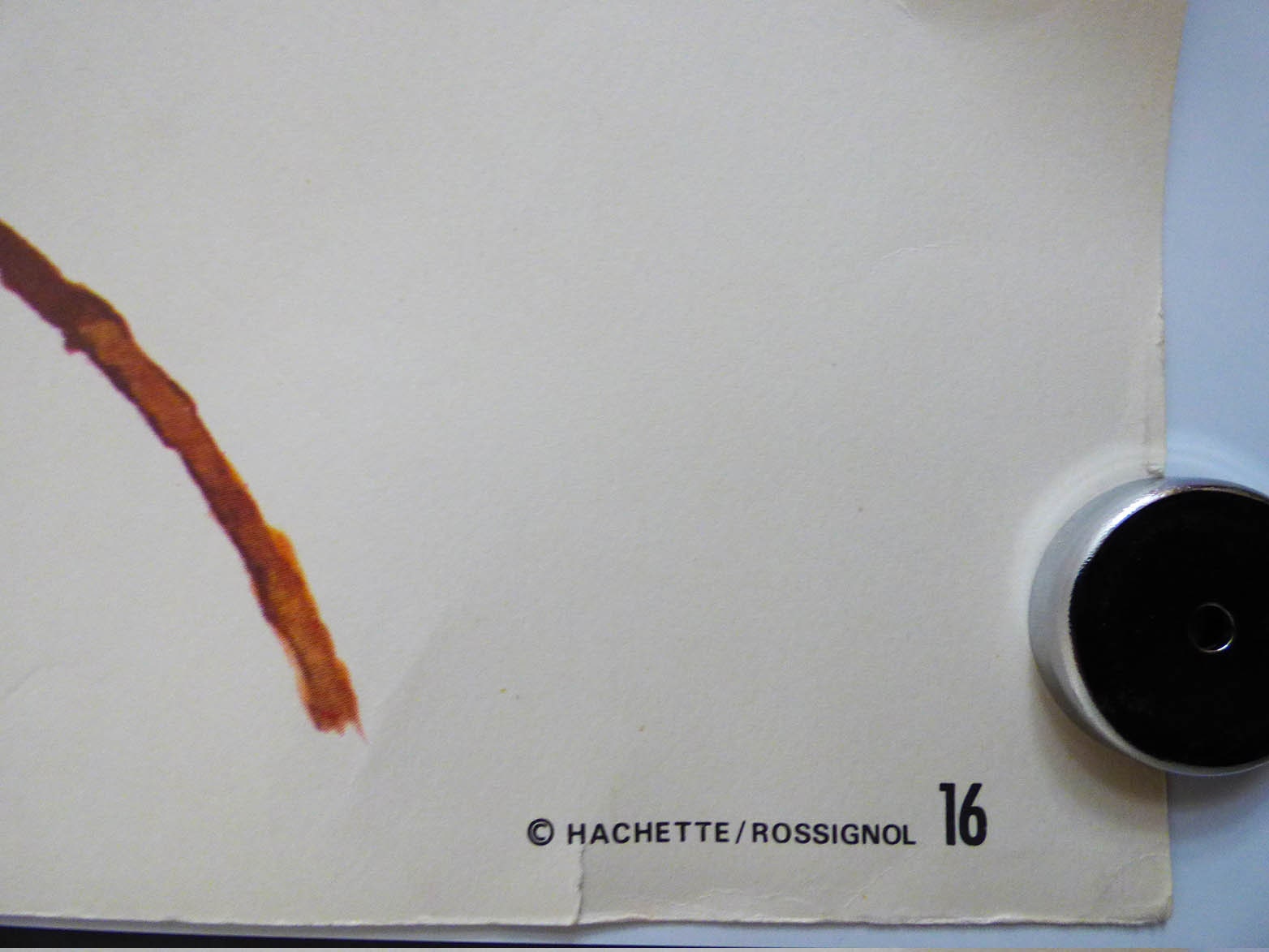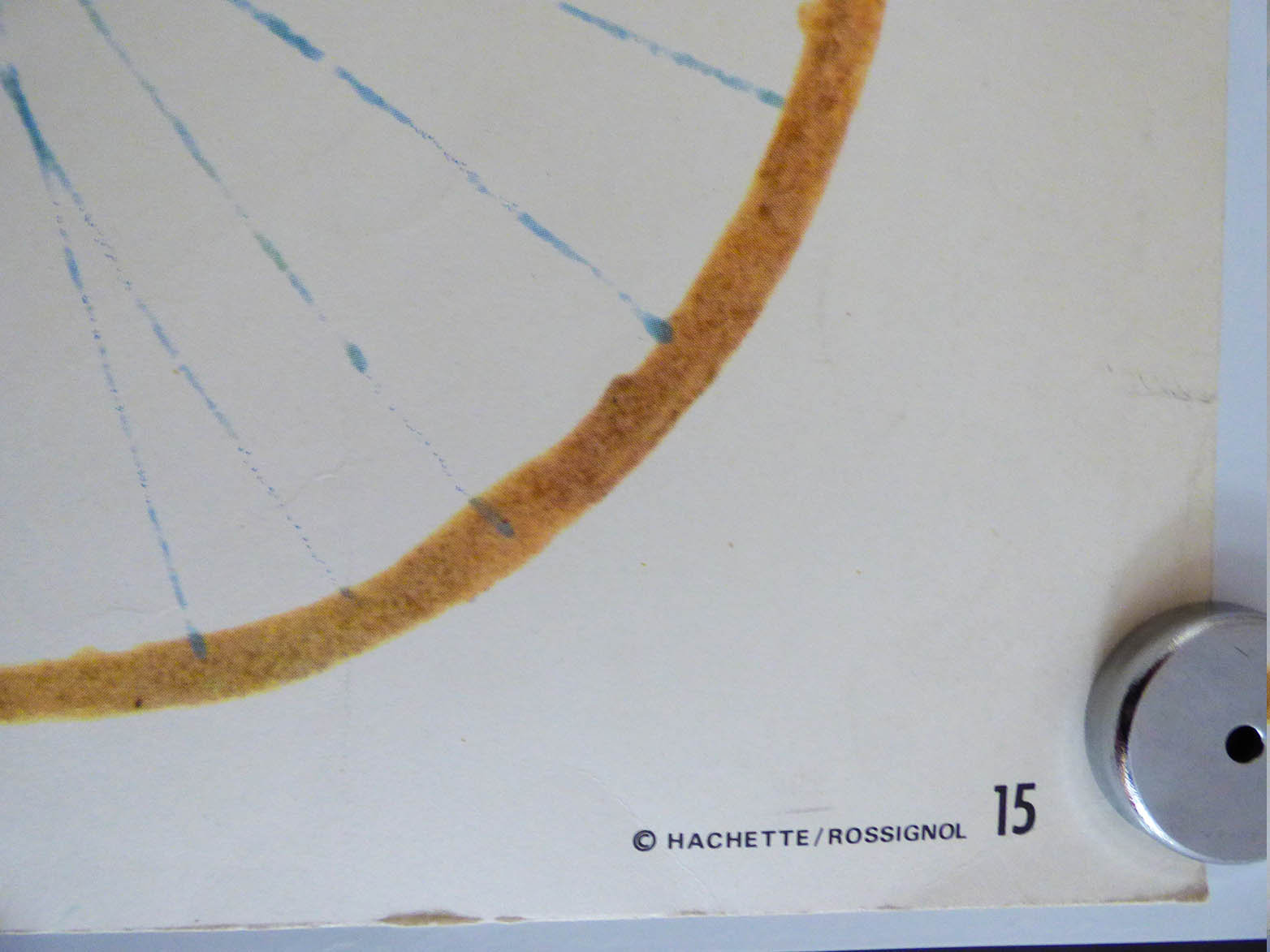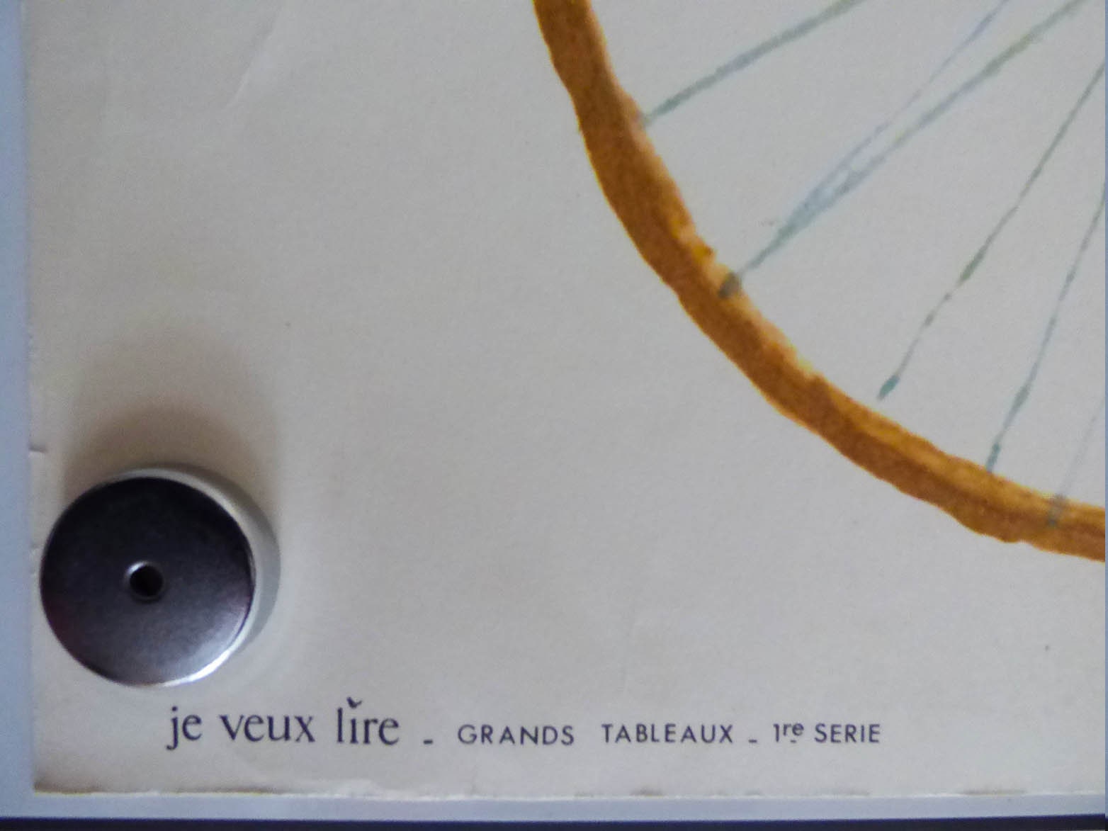 The poster is in good condition for its age, it has obviously got some signs of use, from being used in a French school for some time, there are some light surface marks, and a few tiny tears to the edge, but nothing major. But this is to be expected from a poster of this age and type.