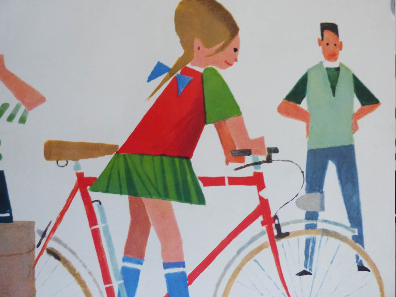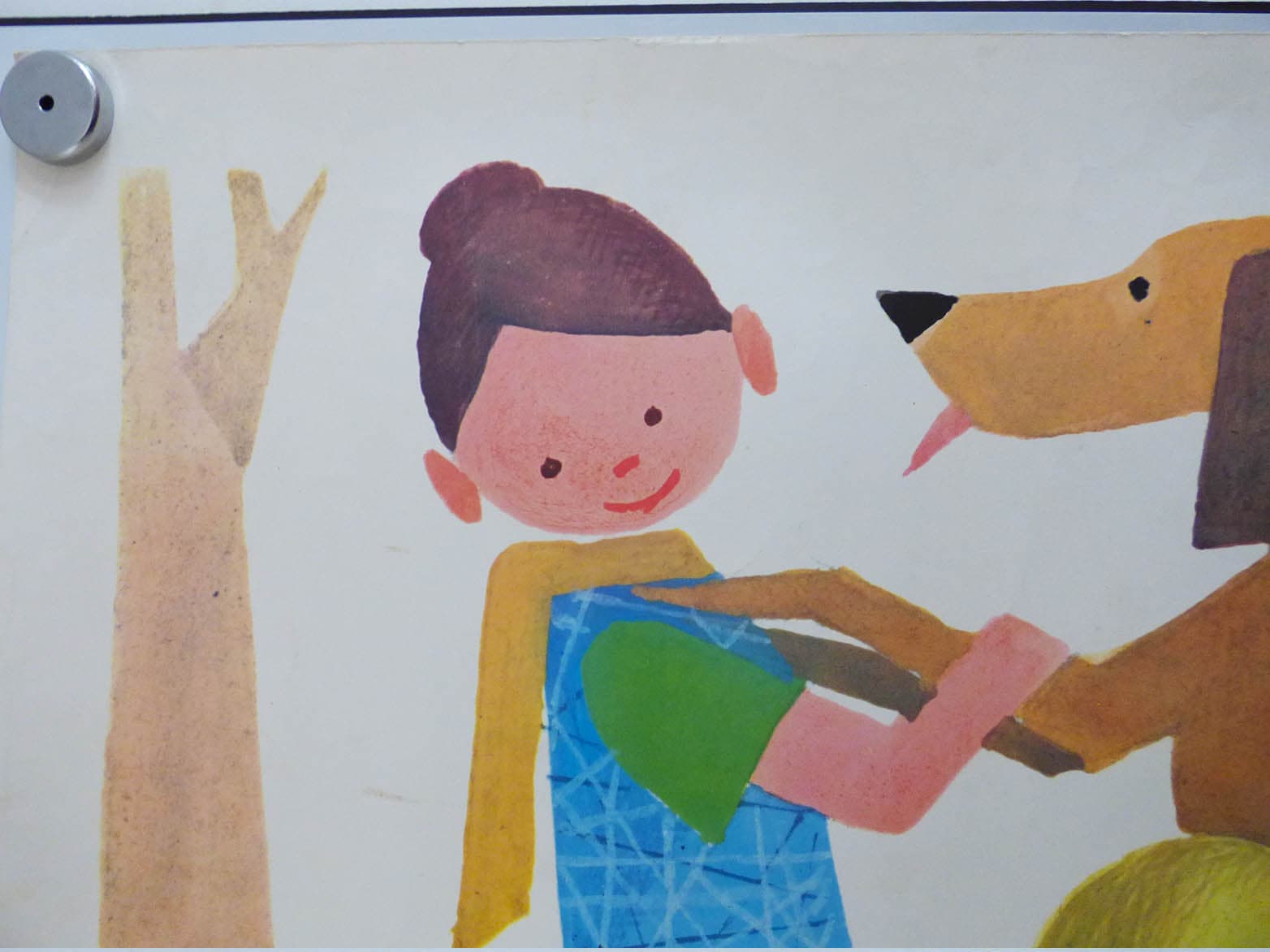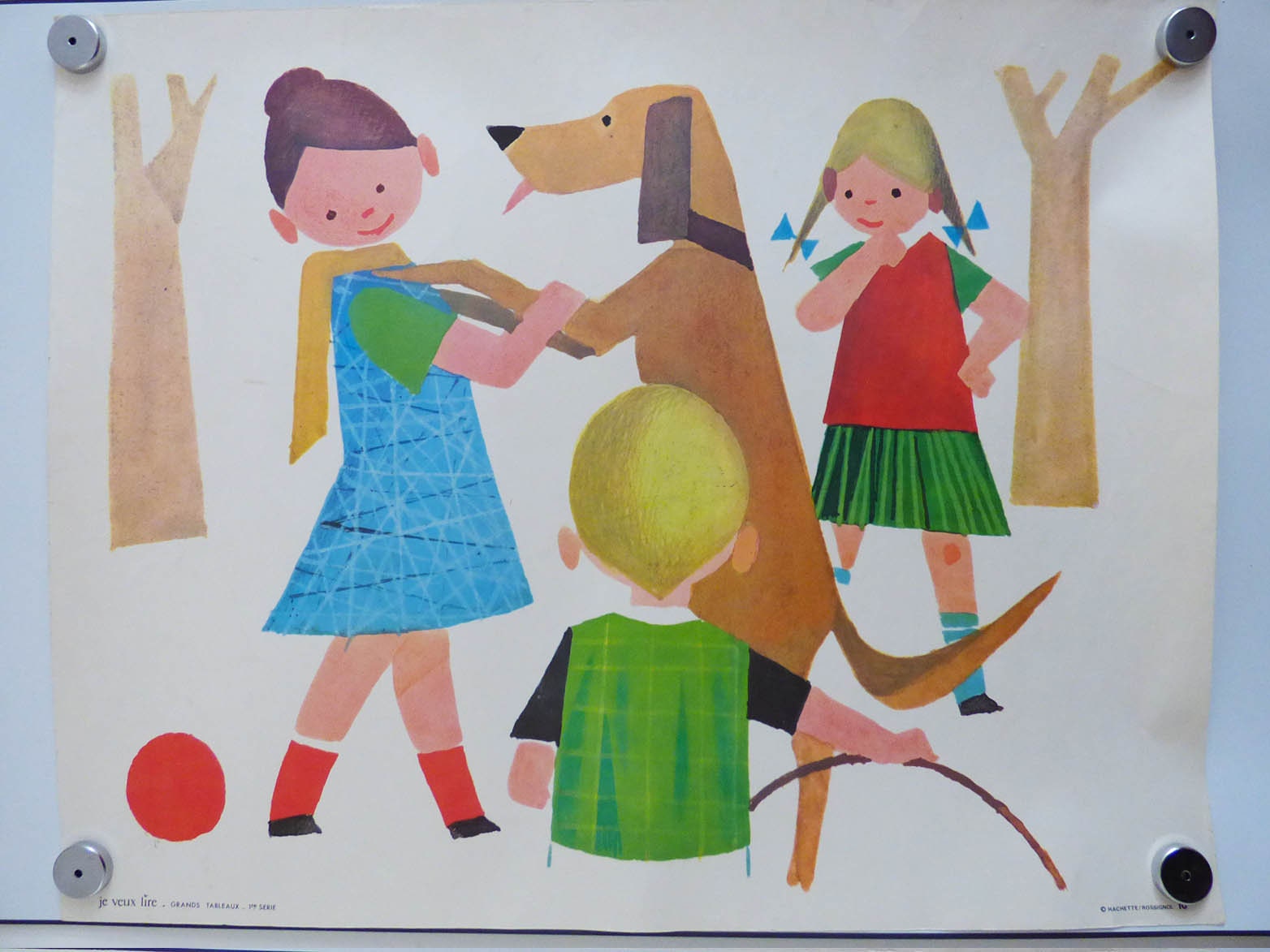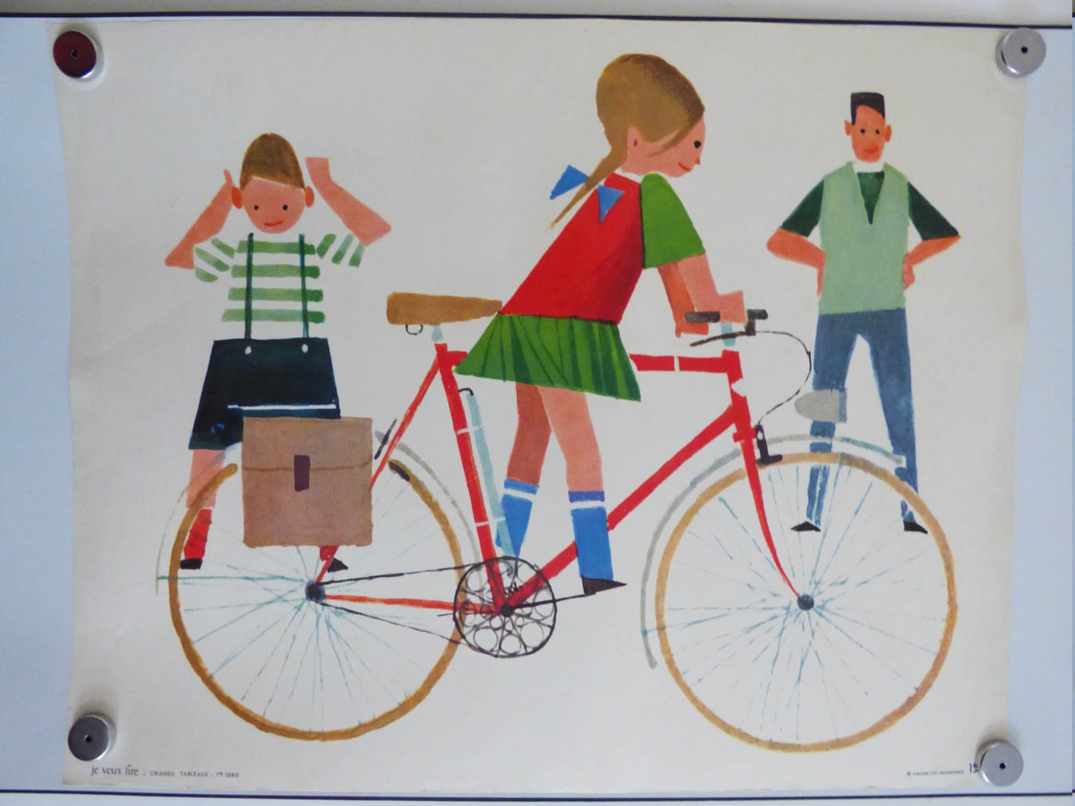 Produced in 1968's, here we have a classic poster from one of Frances classic illustrators, Maurice Grimau, who passed away just last year. Grimaud illustrated a series of mini books, called I want to read, these were used in French Primary Schools in the late 1960s. The 4 mini-books were entitled George's red bike, Cécile and his dog, Gilberte and his doll Guita & The Four Seasons.