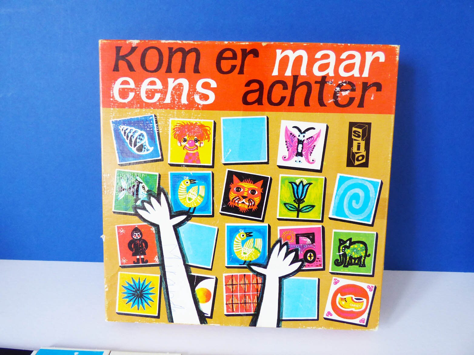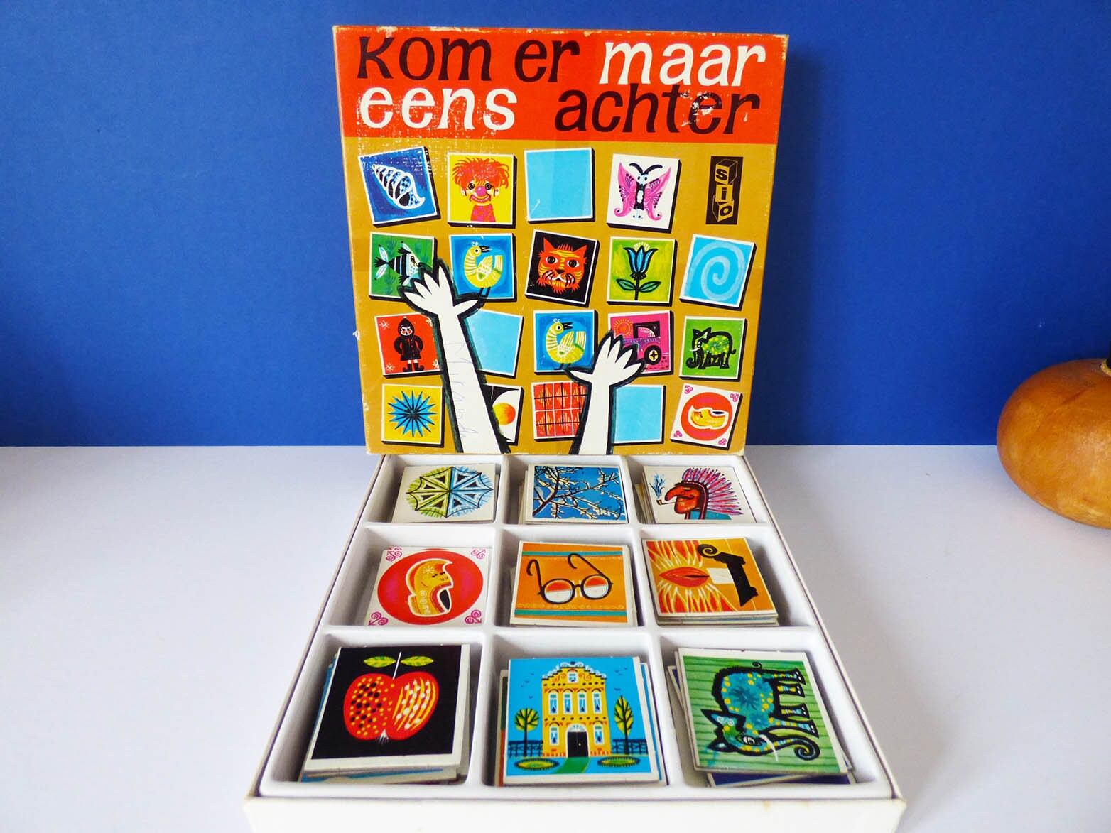 A wonderful 1960's full version of the wonderful classic Dutch memory game "Kom er maar eens achter," the game is a little incomplete, there are 57 pairs. rather than 60 pairs.
