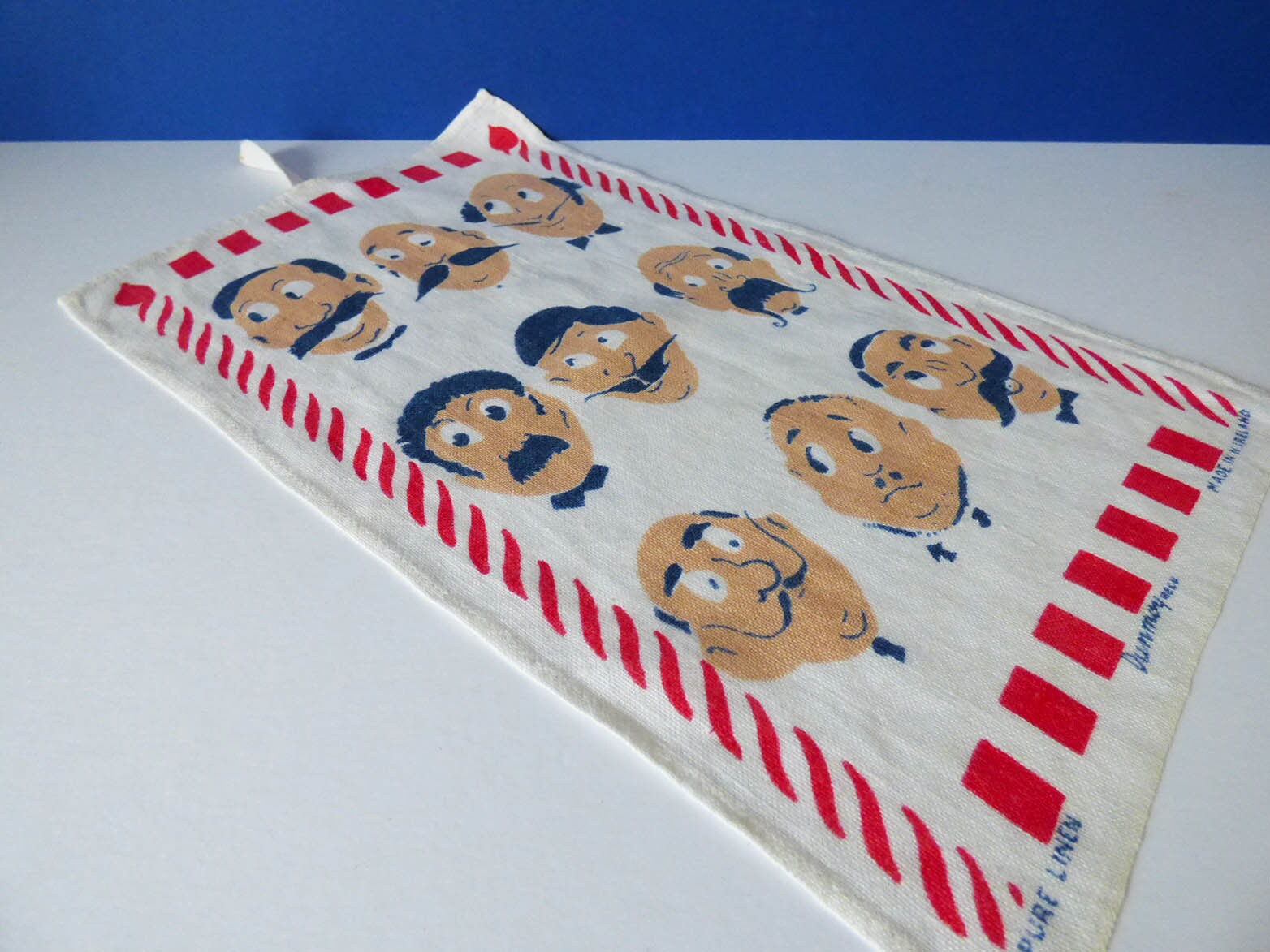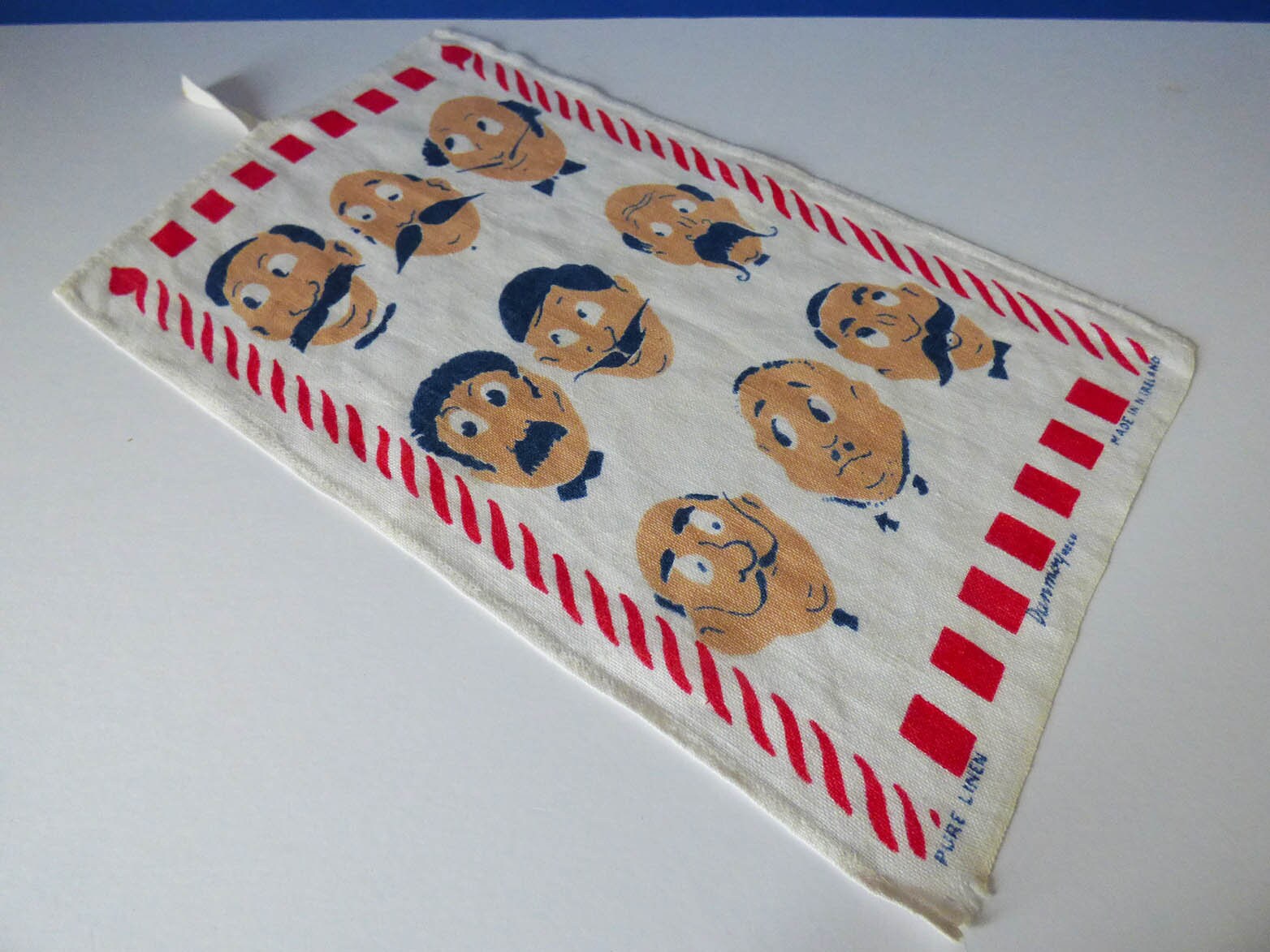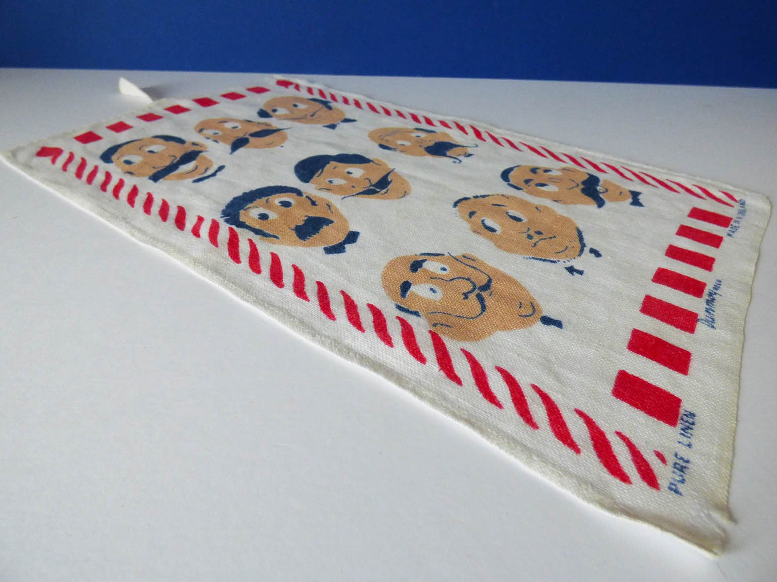Original 1960s illustrated soft cotton shaving cloth, featuring wonderful illustrations, the cloth is in great condition, although there is a little wear to the right-hand corner, see photos.