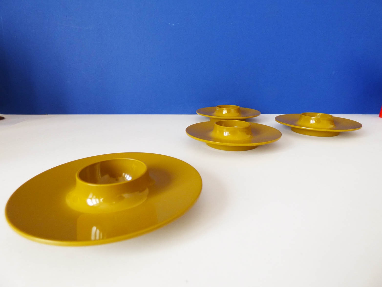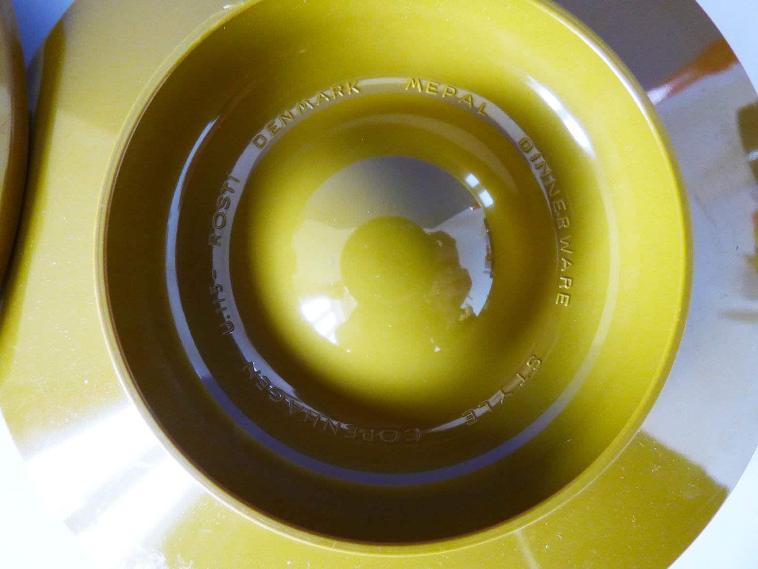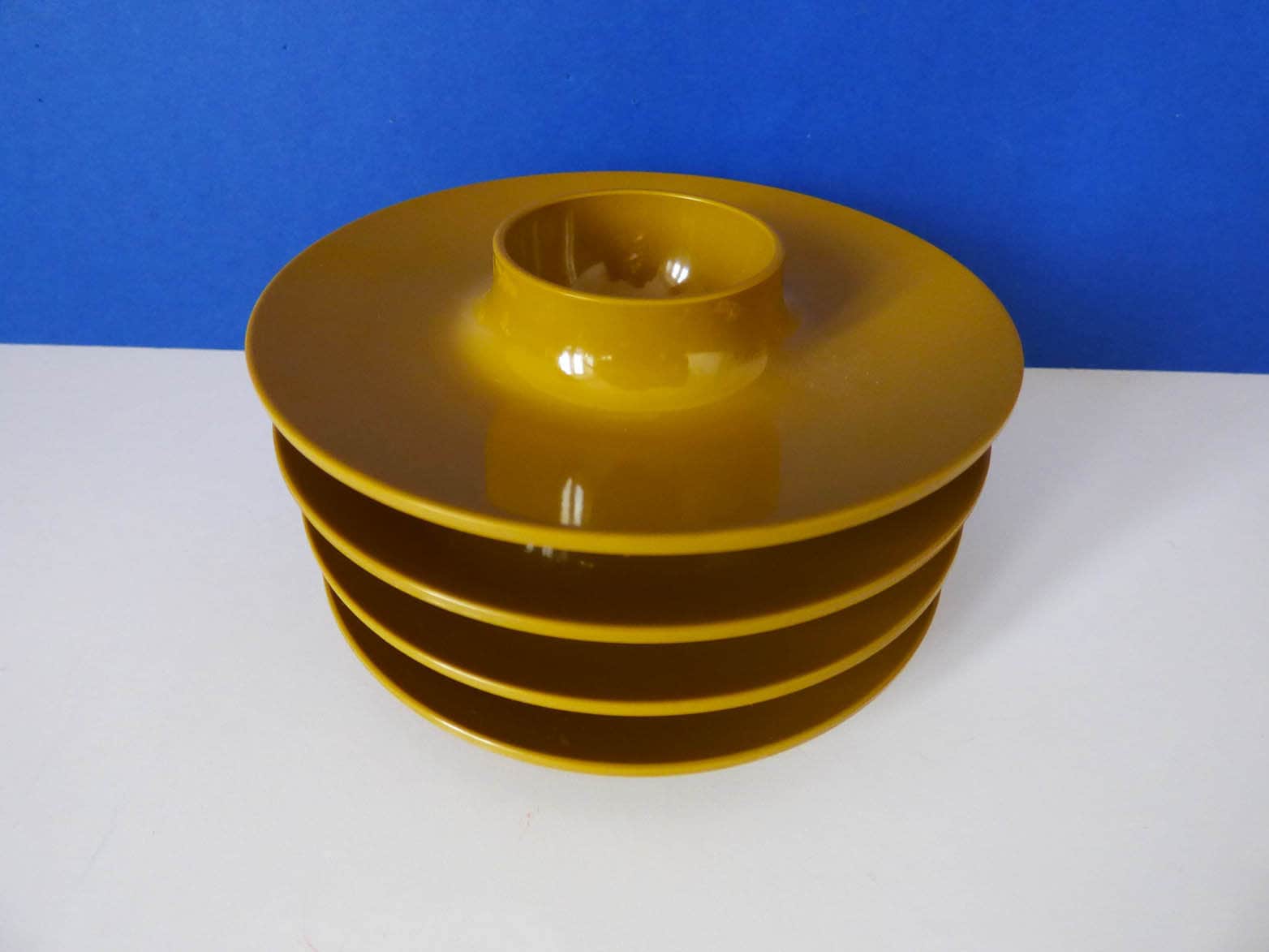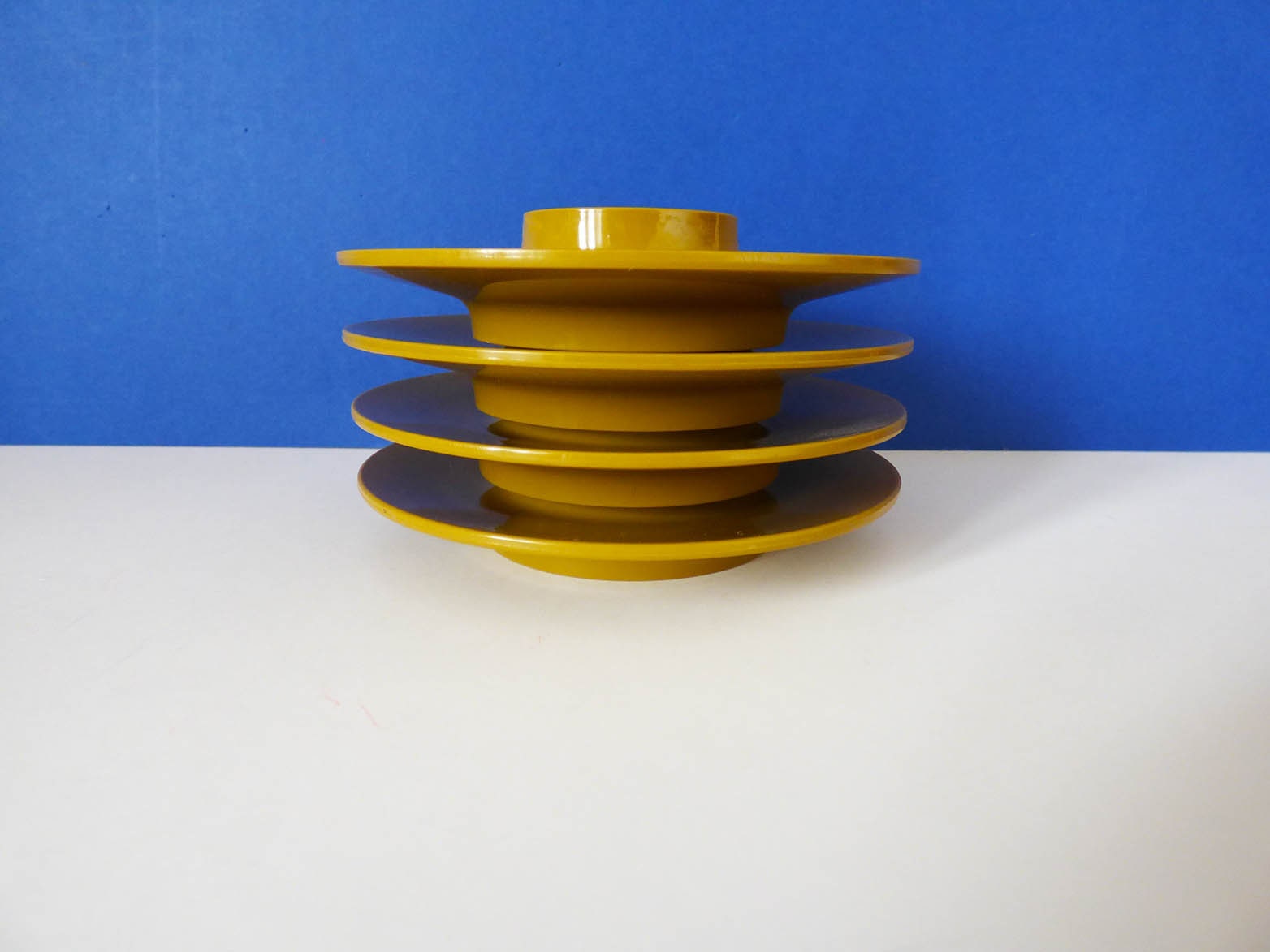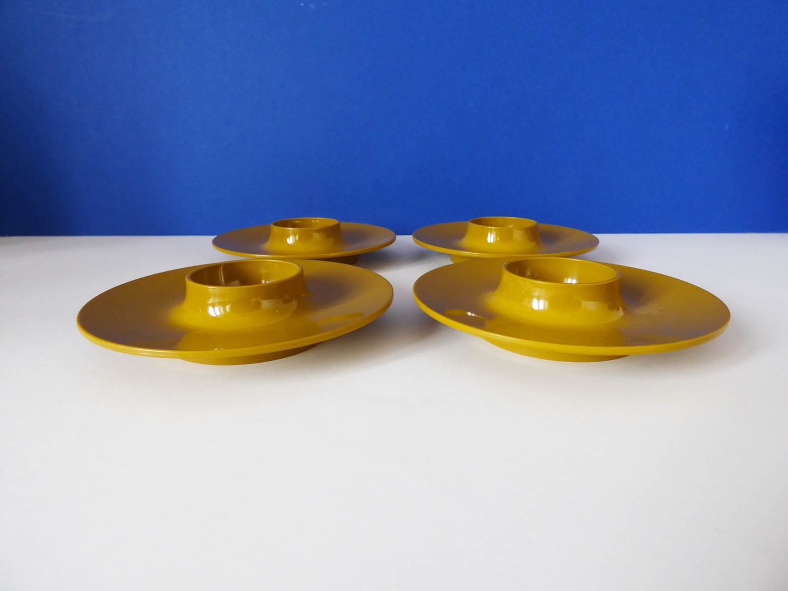 We totally love these, 4 dark olive green/mustard yellow Rosti Mepal egg cups designed by Bjoern Christensen, made in Copenhagen Denmark. An absolutely classic design, which really just can't be beaten, these egg cups have it all, beautifully designed, stackable, in a superb colour... These simply are the best. :)