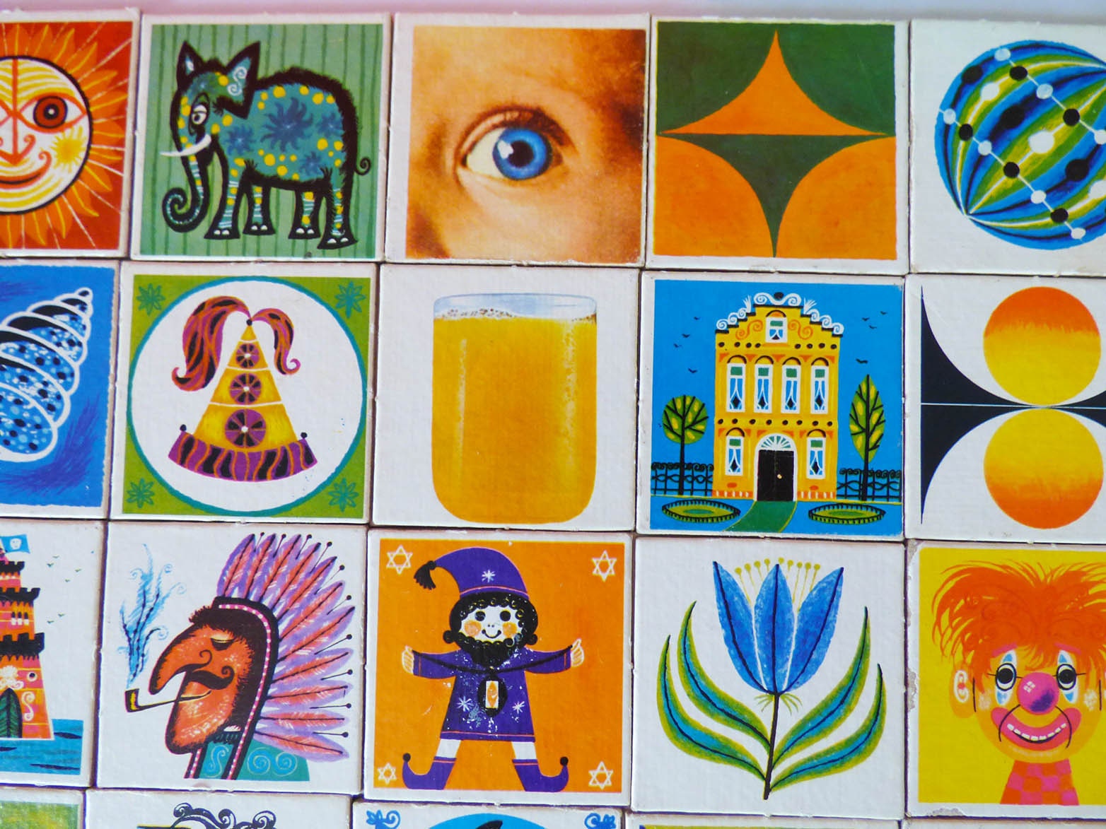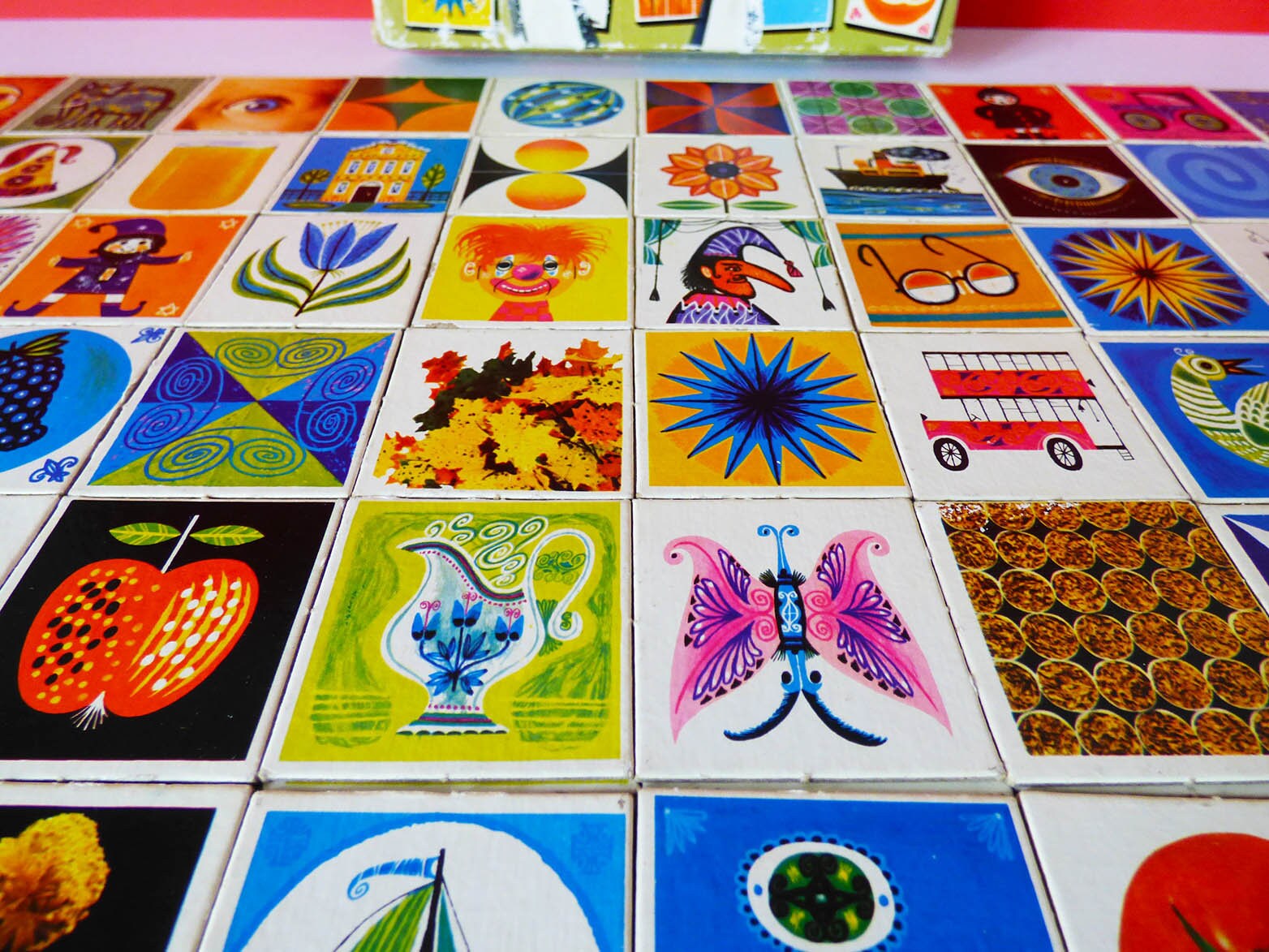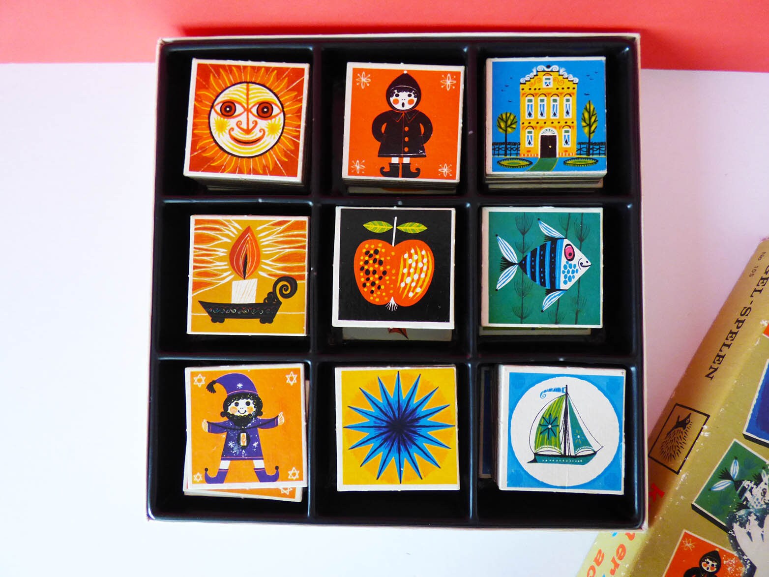 A wonderful 1960's full version of the wonderful classic Dutch memory game "Kom er maar eens achter," the game is a little incomplete, there are 57 pairs. rather than 60 pairs.