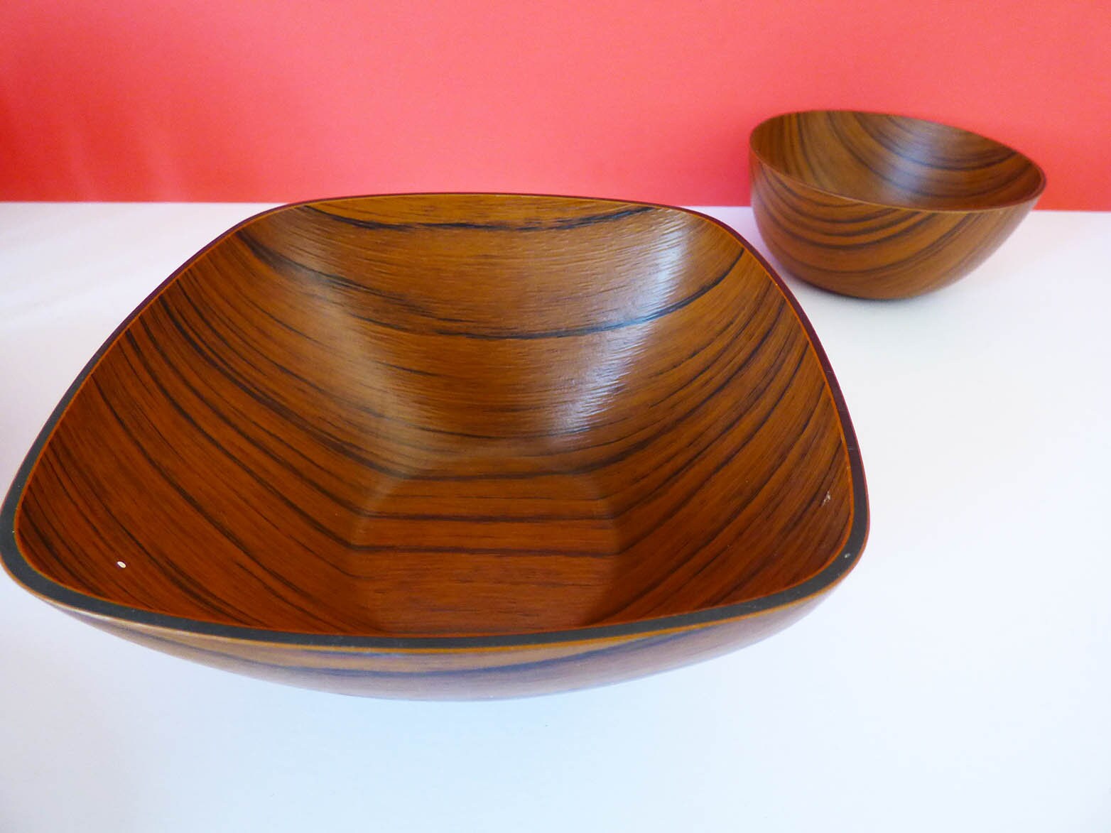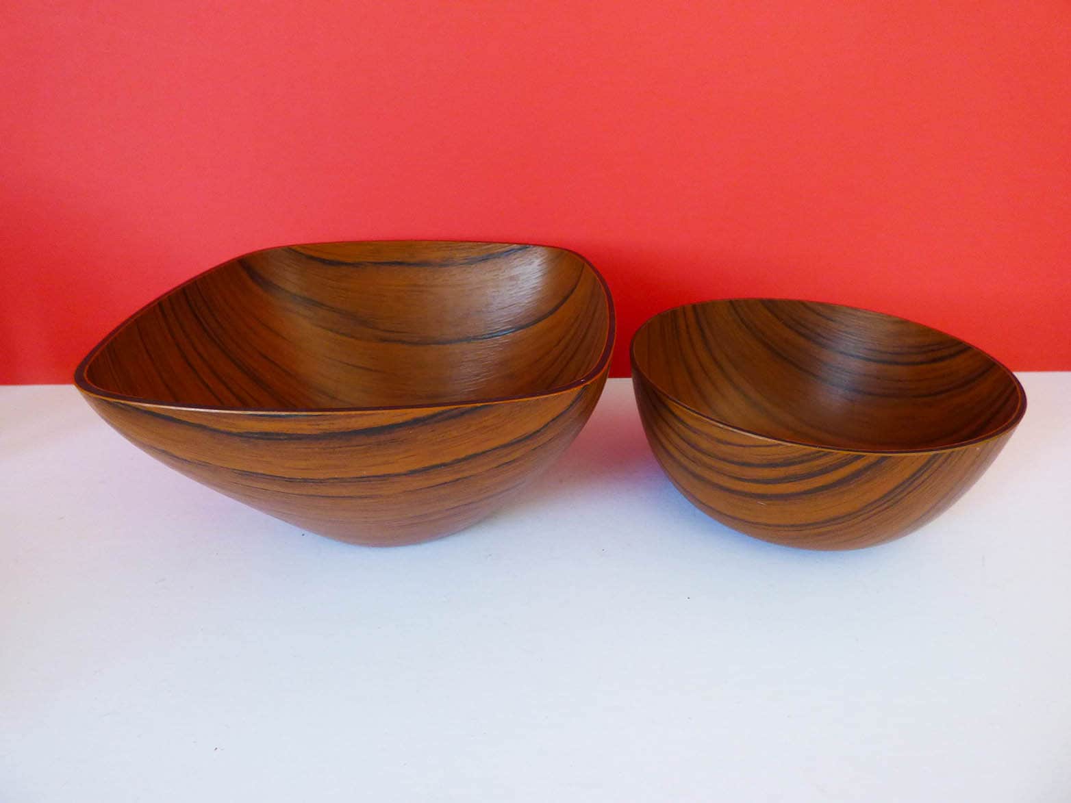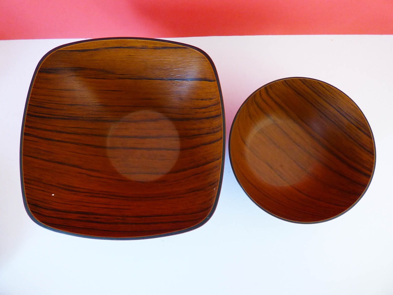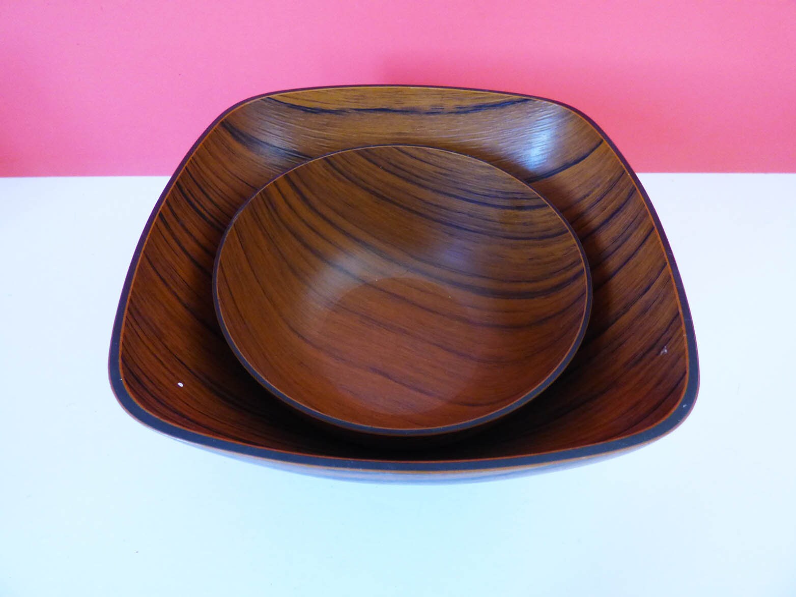 Teak effect plastic dishes, suitable for serving your favorite dishes from pasta to salad these dishes are sure to add a little groove to your supper table.
