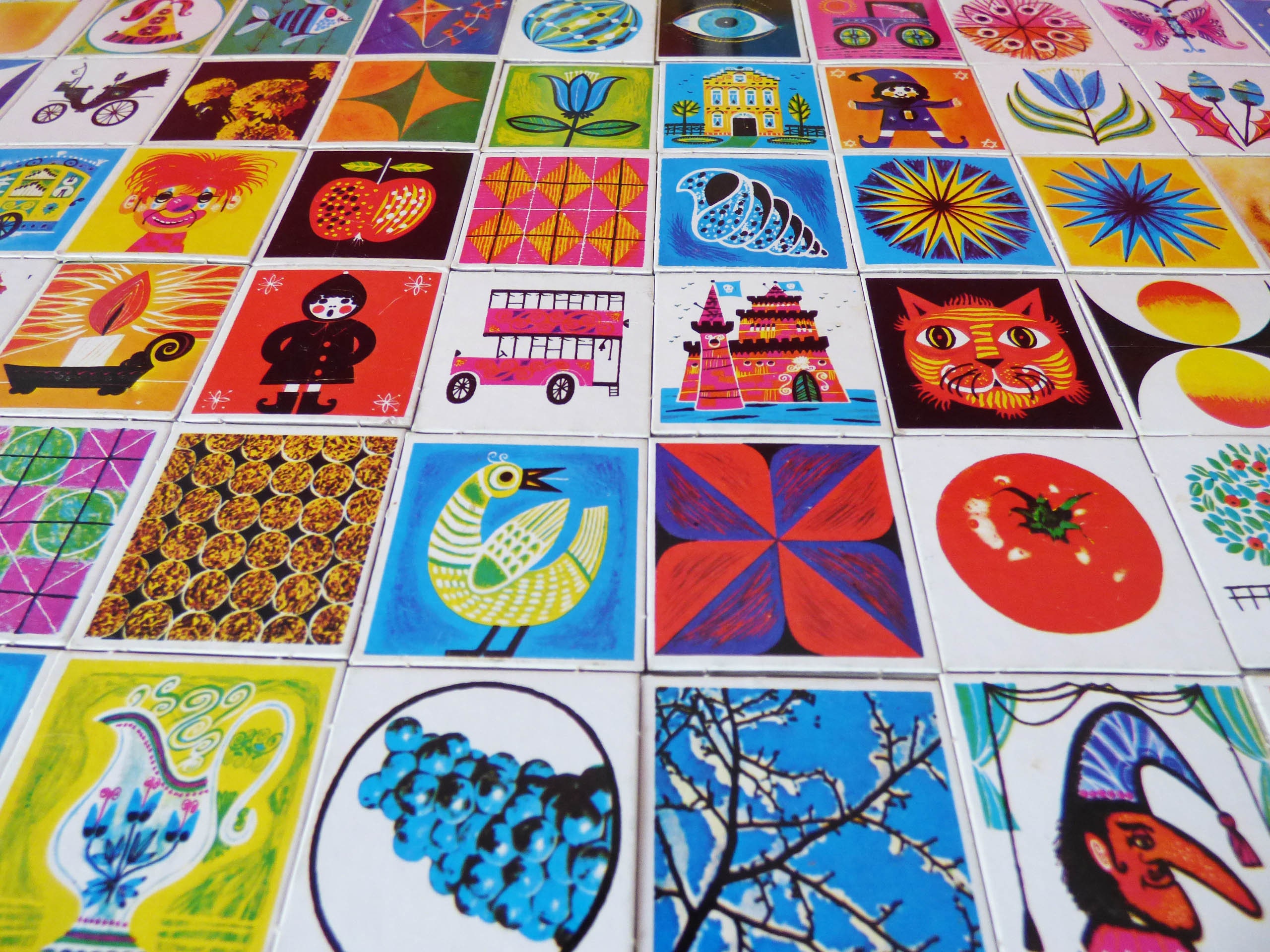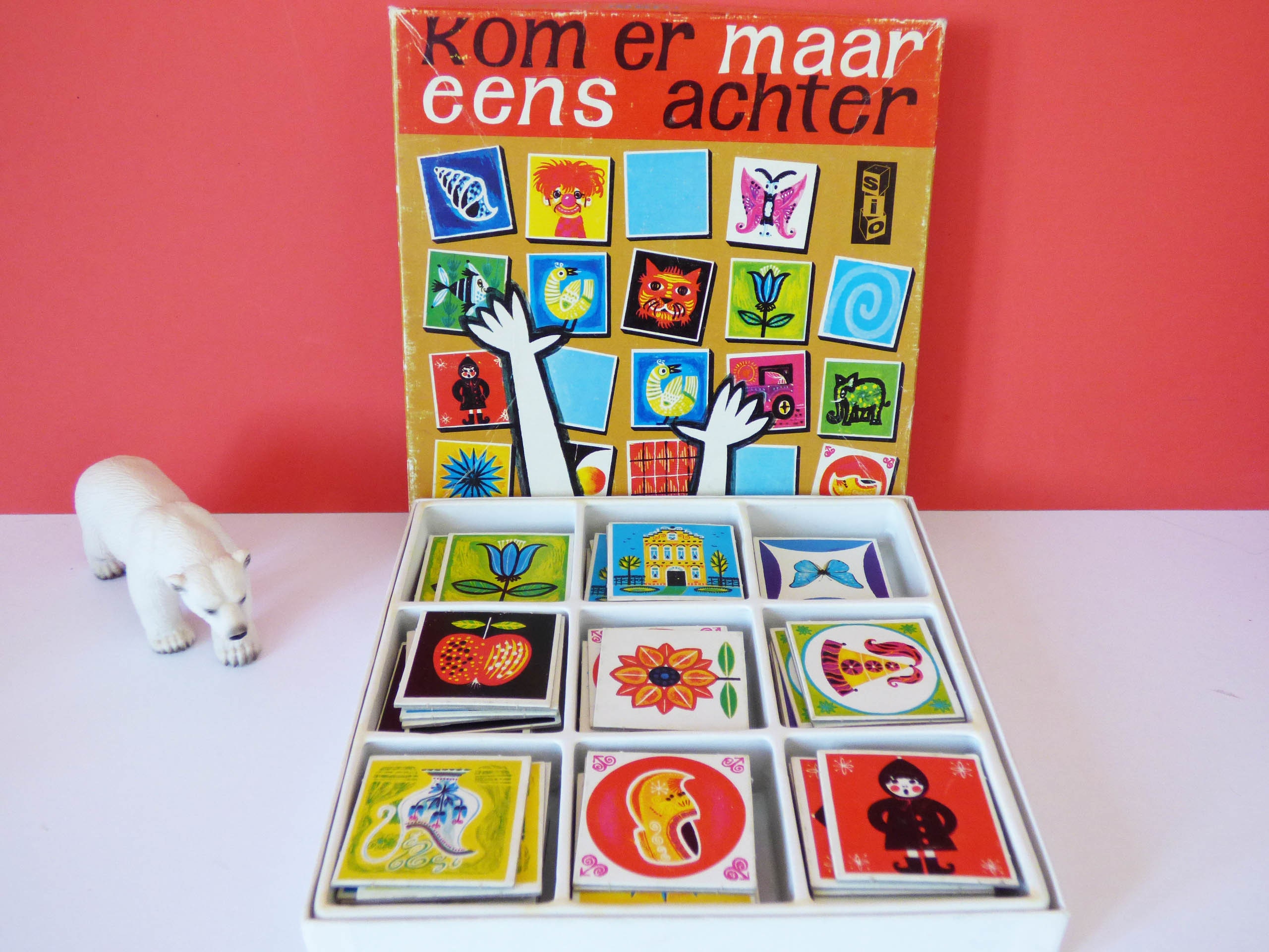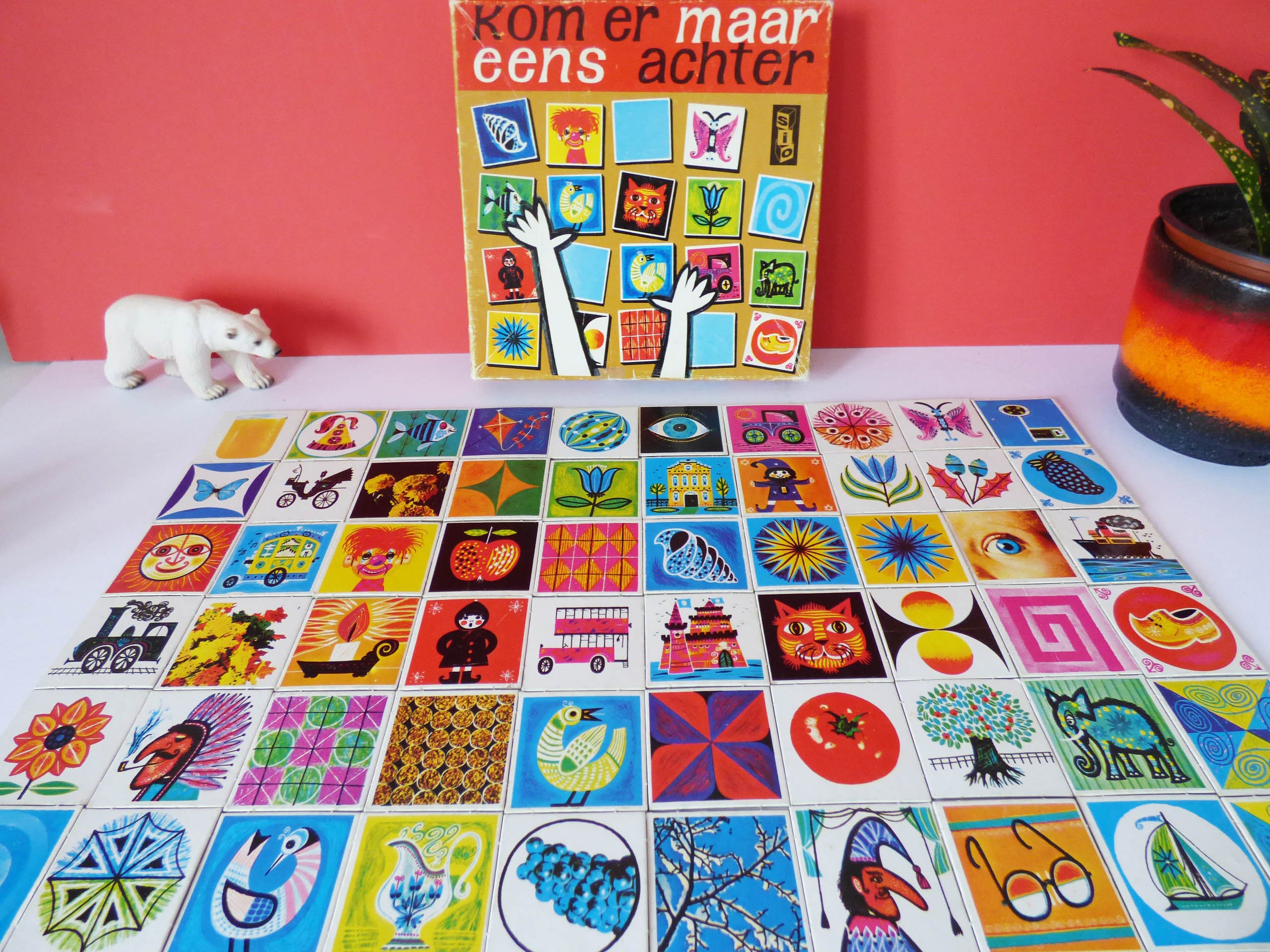 A wonderful 1960's full version of the wonderful classic Dutch memory game "Kom er maar eens achter," the game is complete, with all 60 pairs, so thats 120 cards in total.