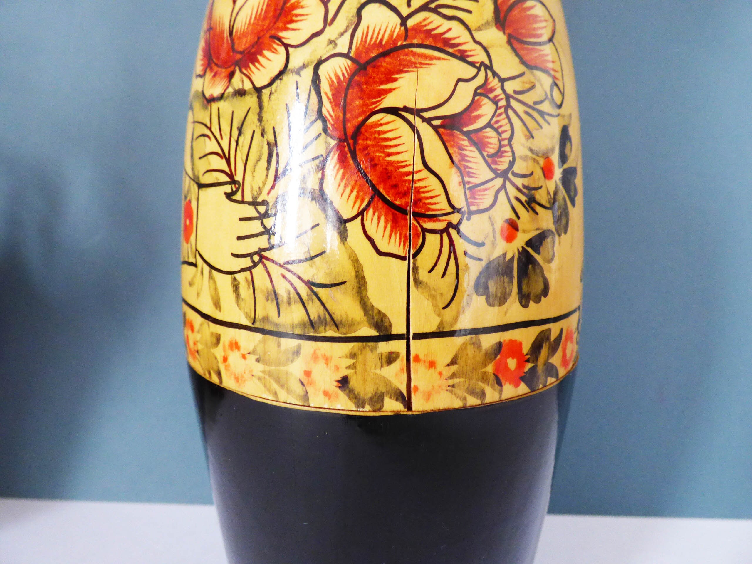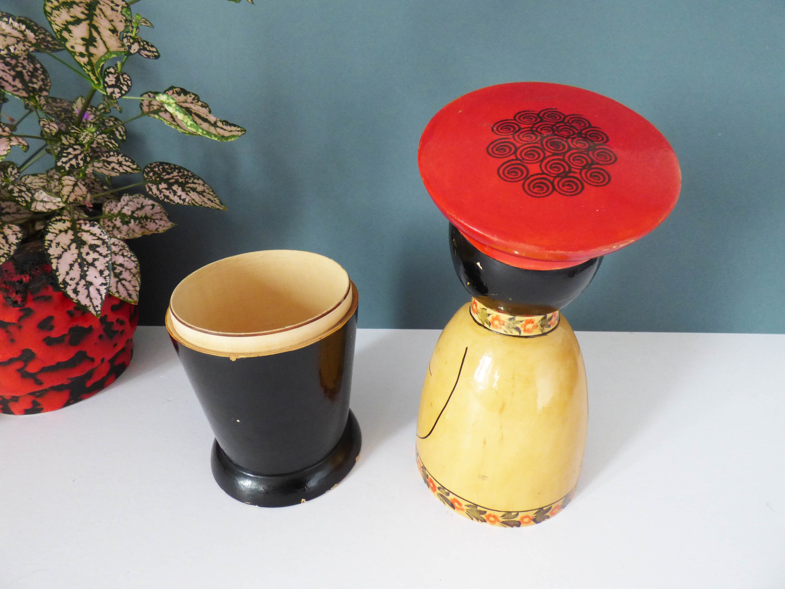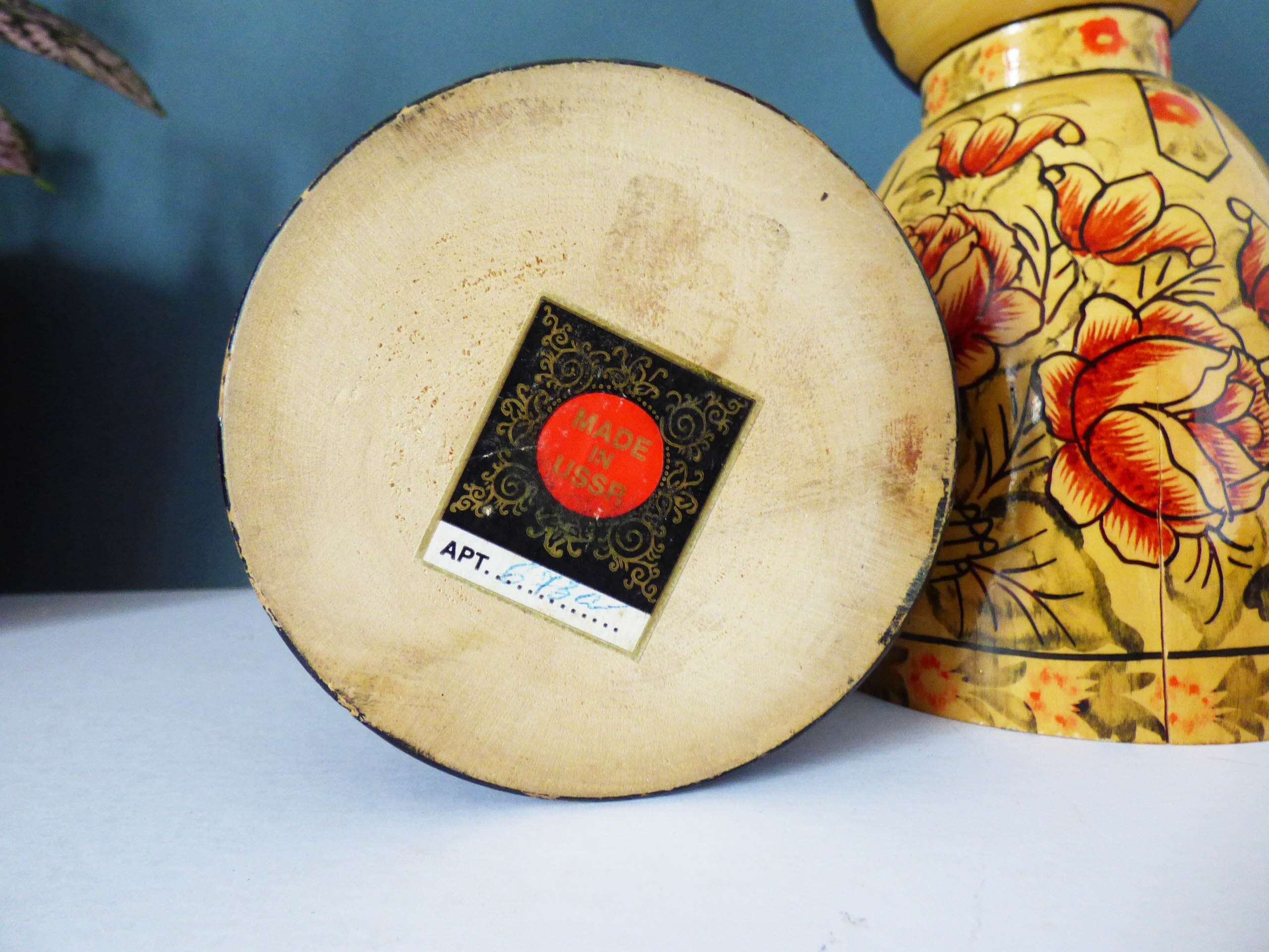 A wonderful very large vintage Matryoshka Doll from Russia, this doll was actually created to hold a bottle of Russian Vodka, although I have also seen a trend towards using these to hold pencils and paintbrushes.