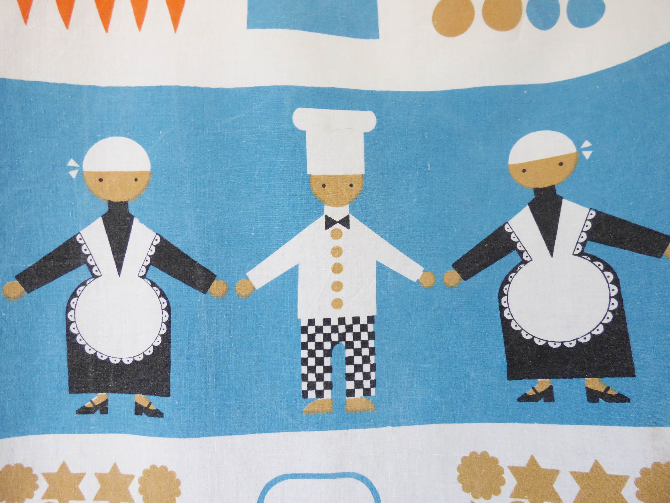 A wonderful pair of Scandinavian vintage curtains, which I believe was created in the early 1970s, probably Swedish. produced in lightweight canvas-like cotton, the fabric has a wonderful design of Vintage cookware, chefs and vegetables, which would look amazing in the kitchen or dining room. The curtains measures 110cm wide x 110cm in length each...that's 43.3 inches square