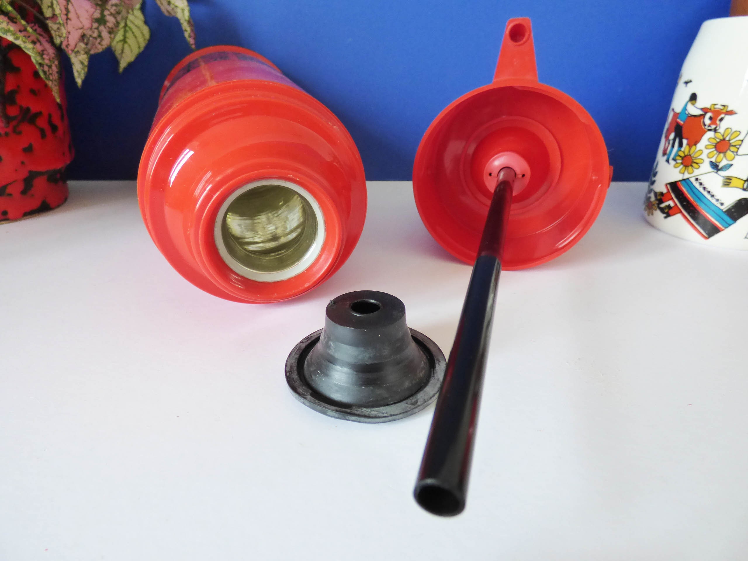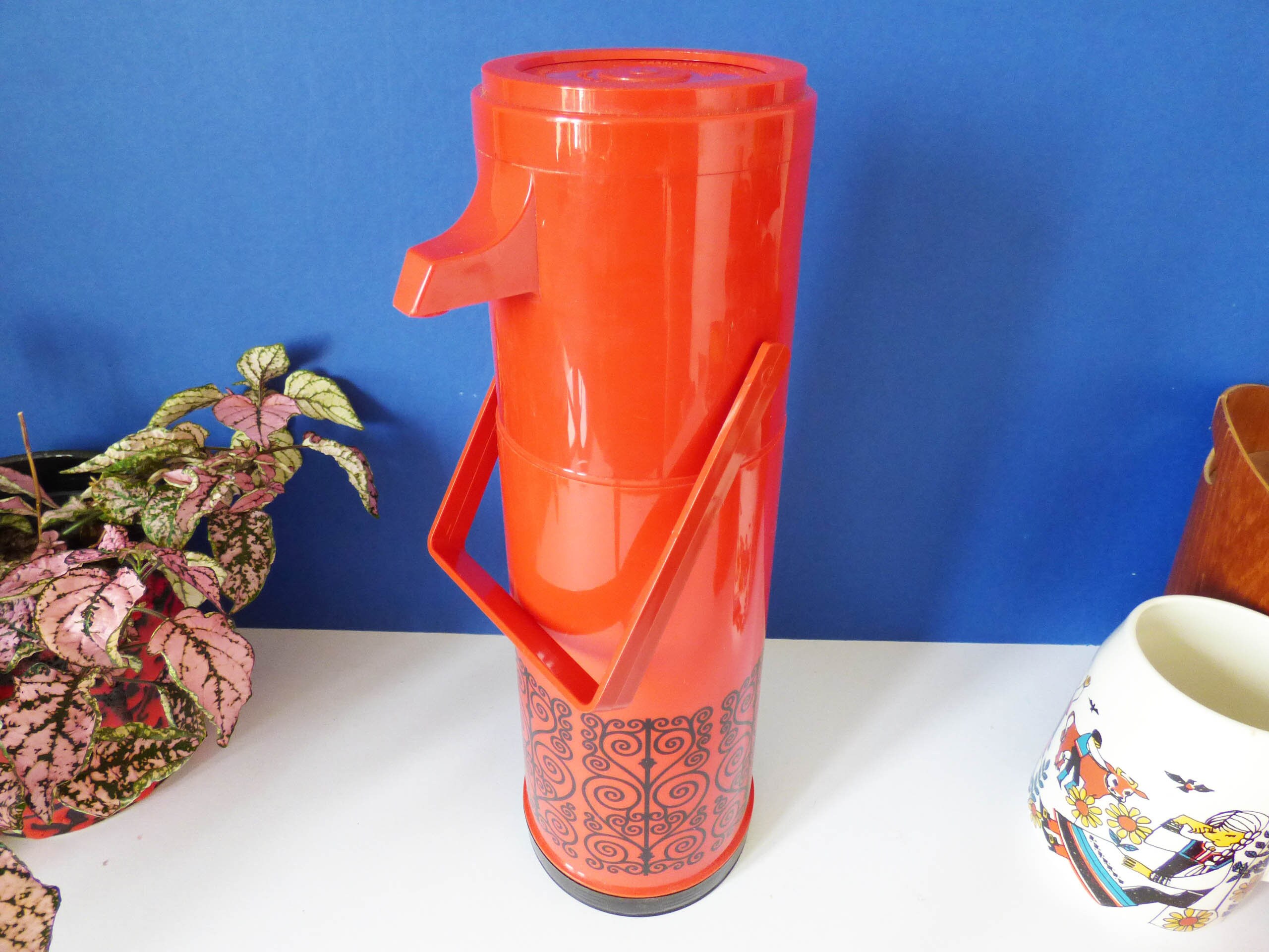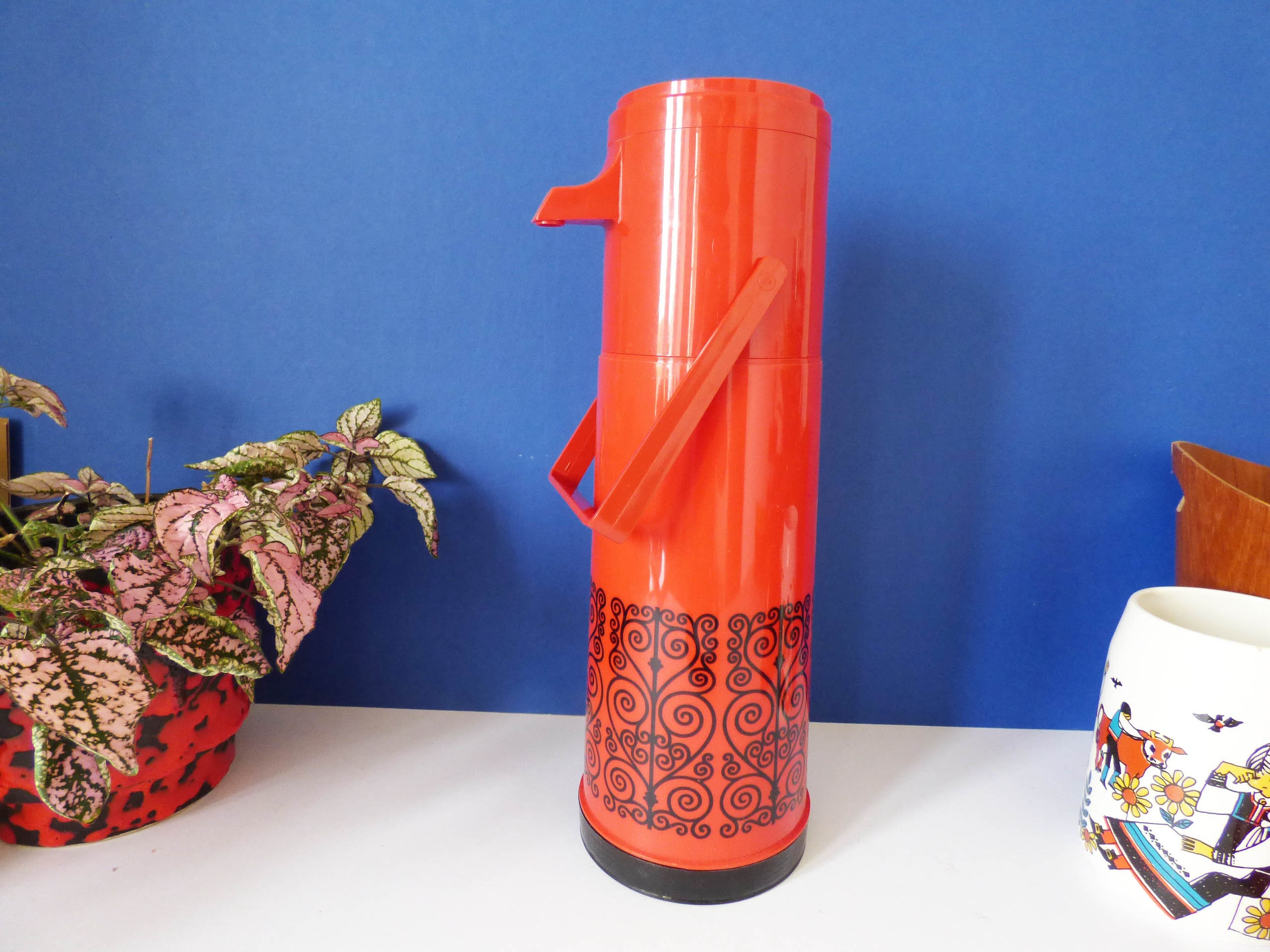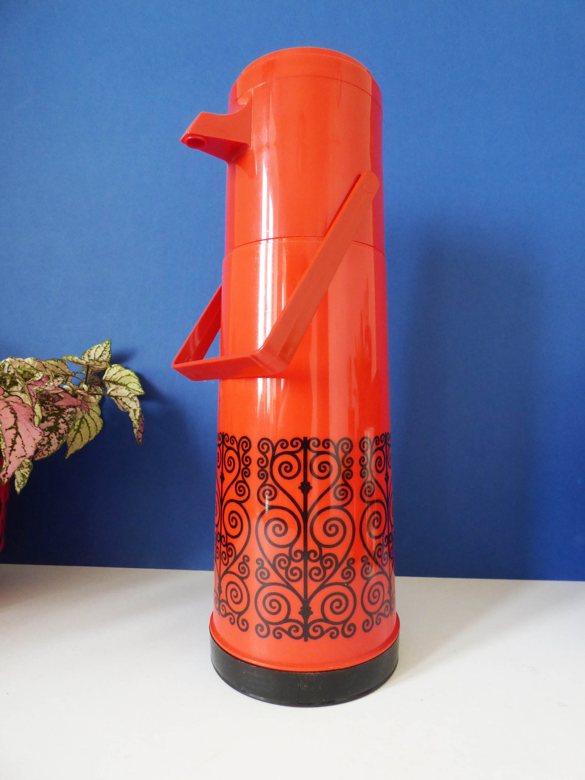 Amazing "Pump a Drink" vintage flask still in its original box, created by Aladdin Industries, and in fantastic condition, you can see it has never been used. As the box states... The Pump a drink .. Super Convenient at home or on the go! Pump -a -drink with the built-in dispenser. Just press the pump once or twice no caps to unscrew! Perfect for at home, at work or out and about. Keeps beverages hot and cold for hours. Capacity 0.97 litres-32 fl ozs.