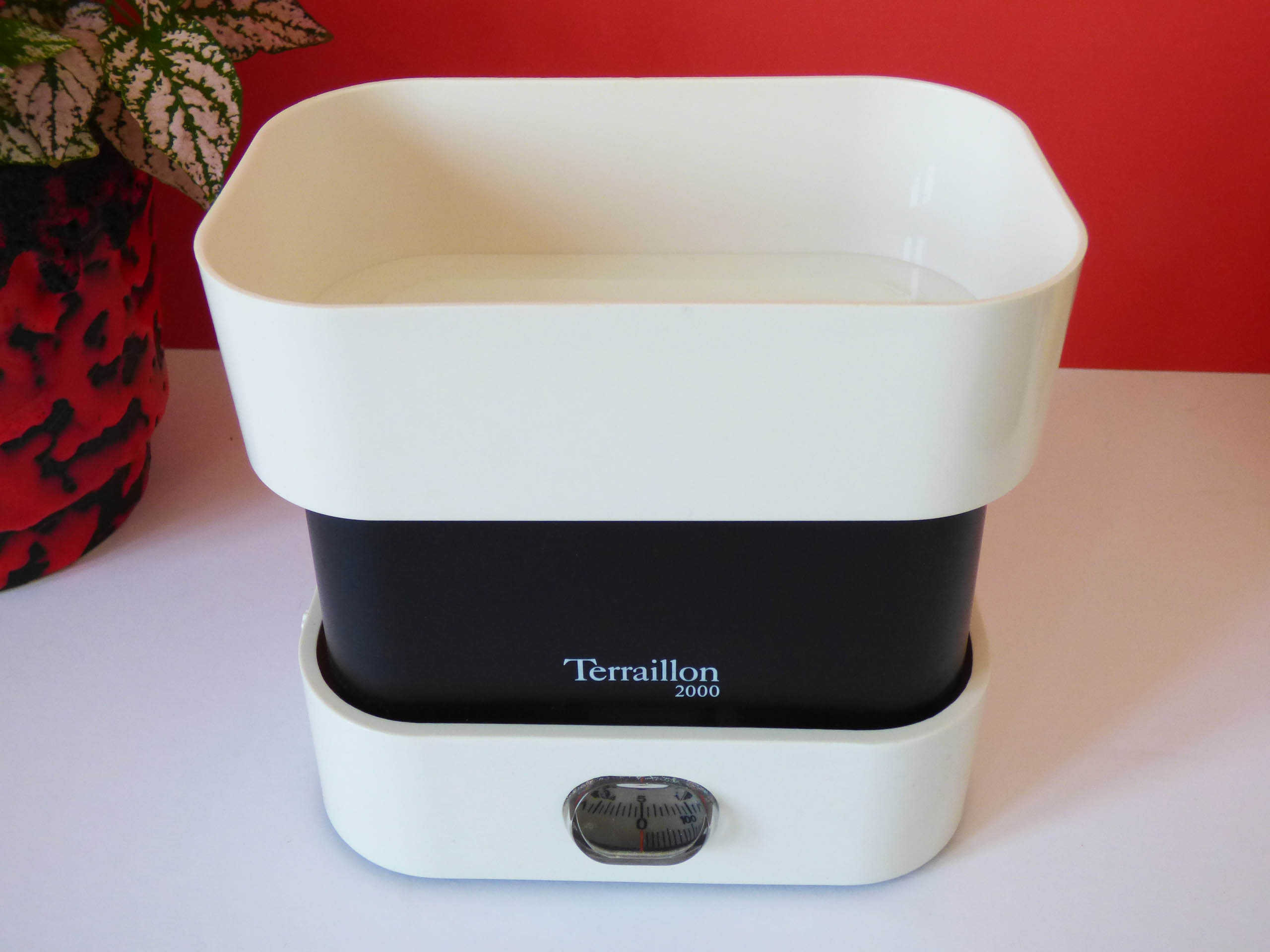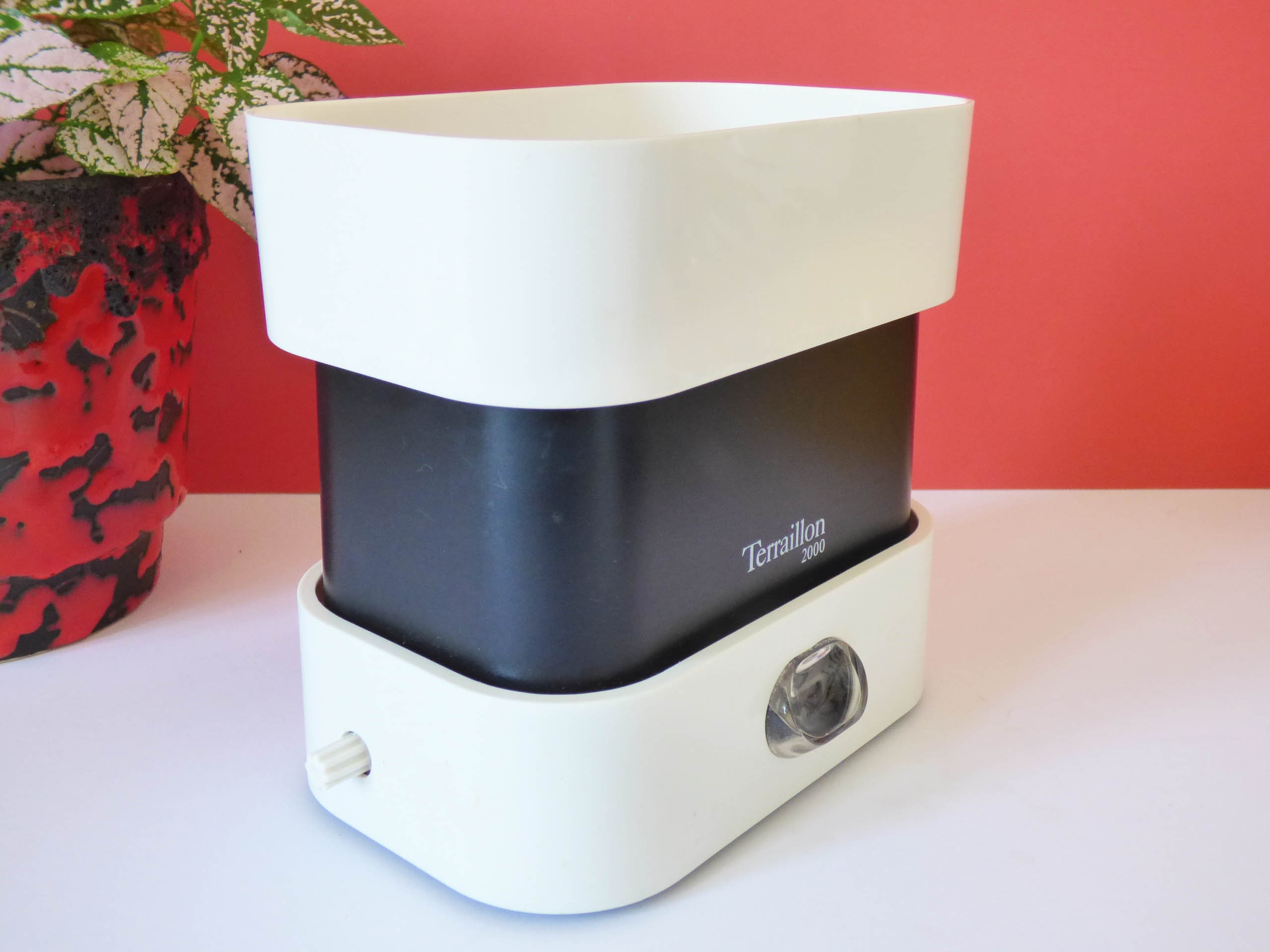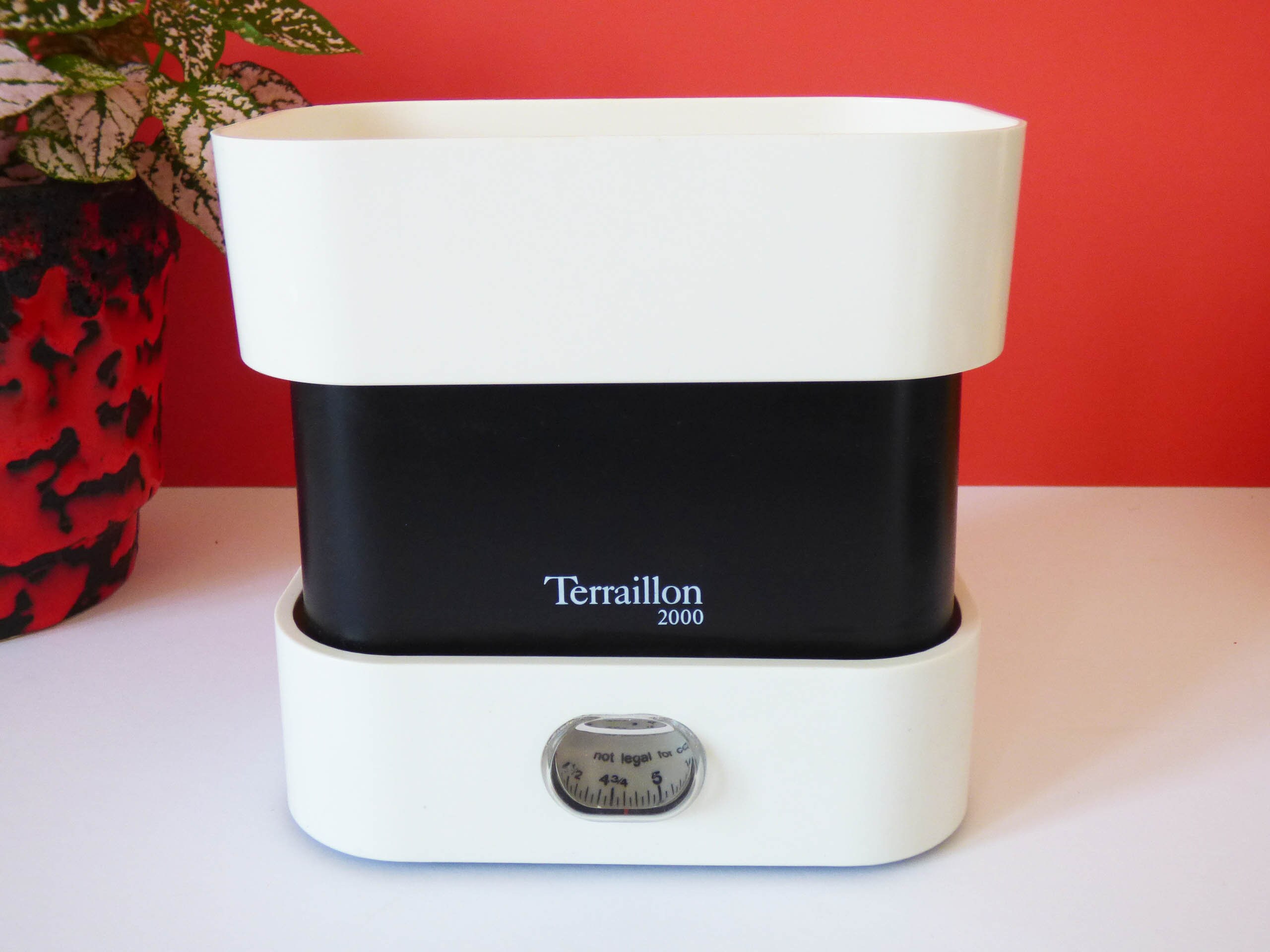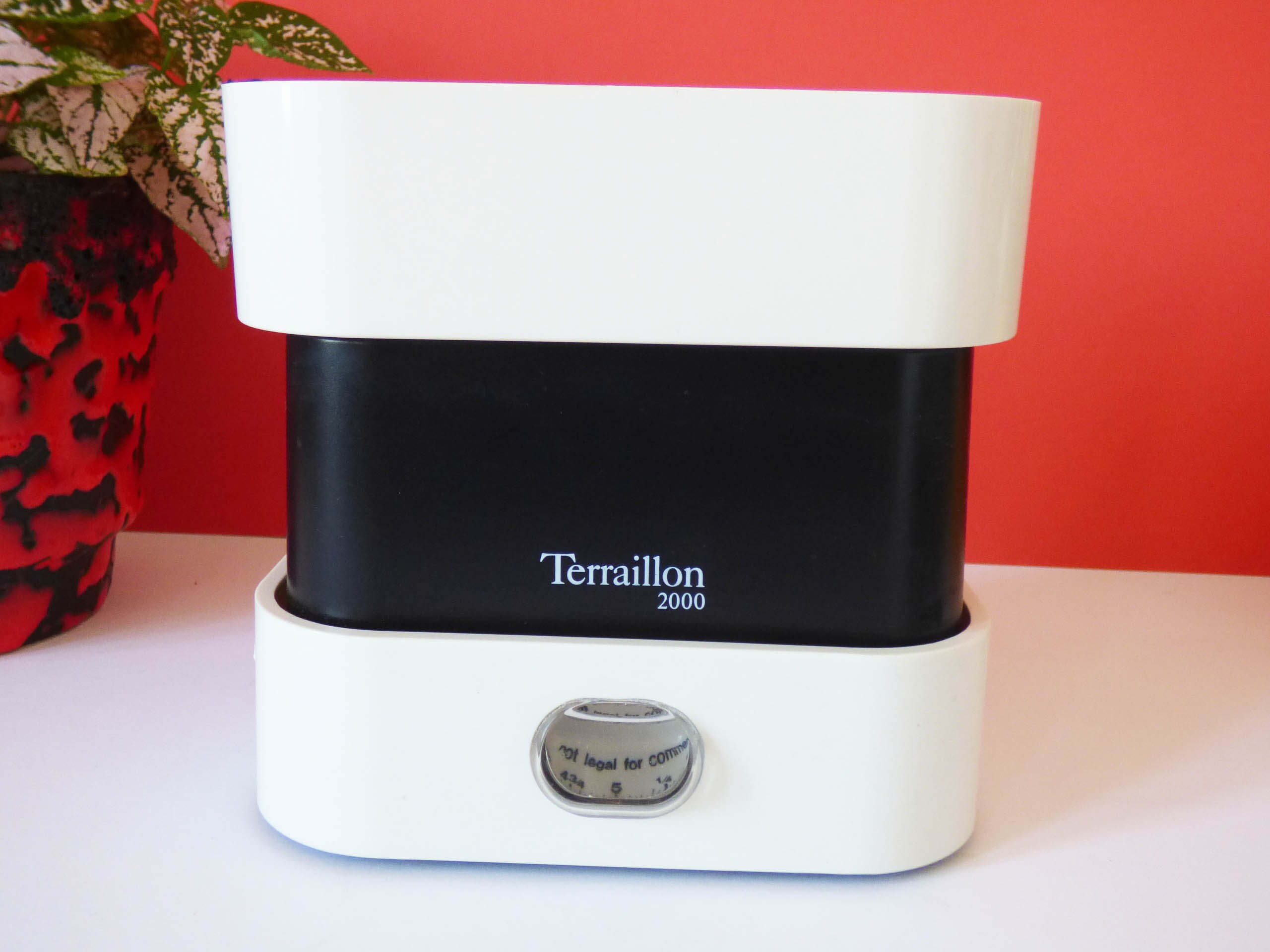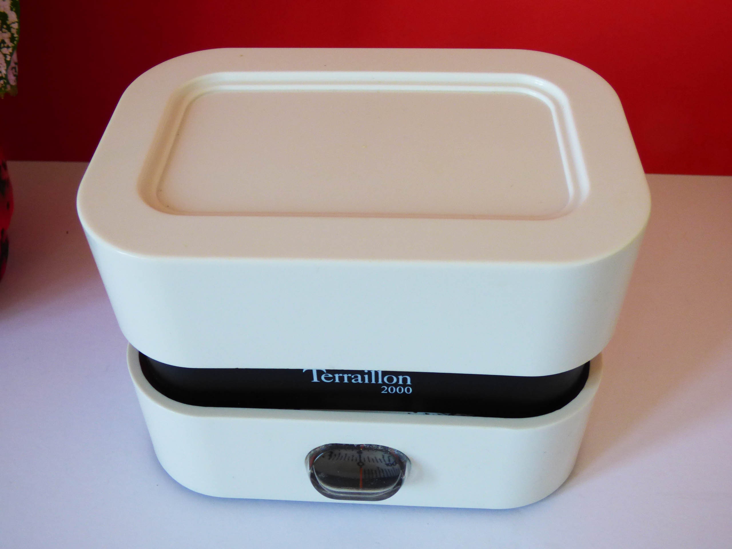 A wonderful set of Terraillon 2000 kitchen scales designed by Marco Zanuso, and produced in France. These vintage scales have become a design classic, this is the smaller version which Terraillon produced and will weigh up to 4 pound or 2 kilograms in weight. the simple design means that when the scales are not in use, the bowl sits upside down on top, creating a sleek and compact form, perfect for smaller kitchens. The weight can be read via the magnified window, giving a clear and accurate reading, making cooking easier and more fun.